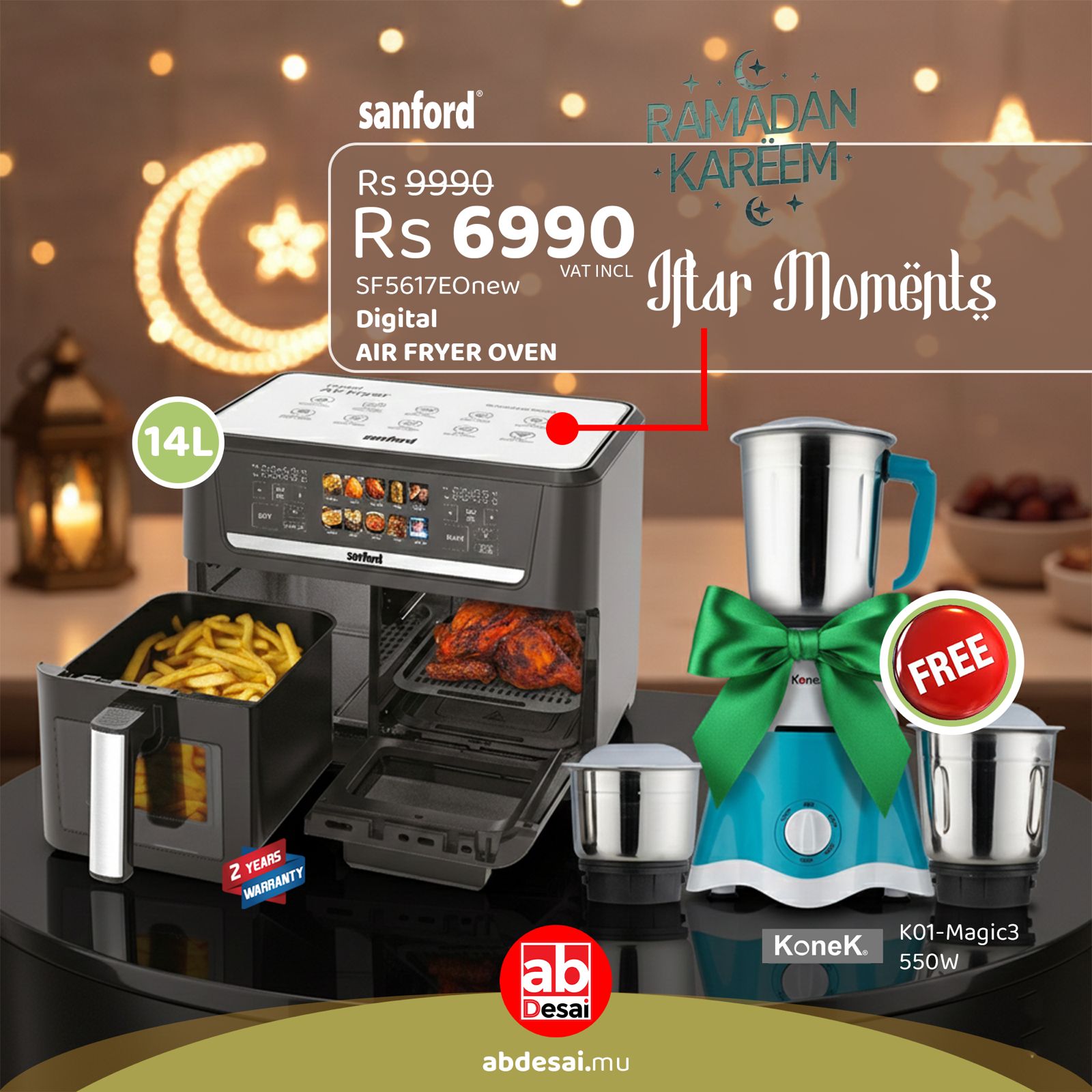 Sale Product on saleSANFORD 4L Digital Air Fryer with LED Display and Non-Stick Basket SF2455AF Black + Free Mixer Grinder K01 worth Rs 1990₨3,990.00Original price was: ₨3,990.00.₨3,290.00Current price is: ₨3,290.00. -