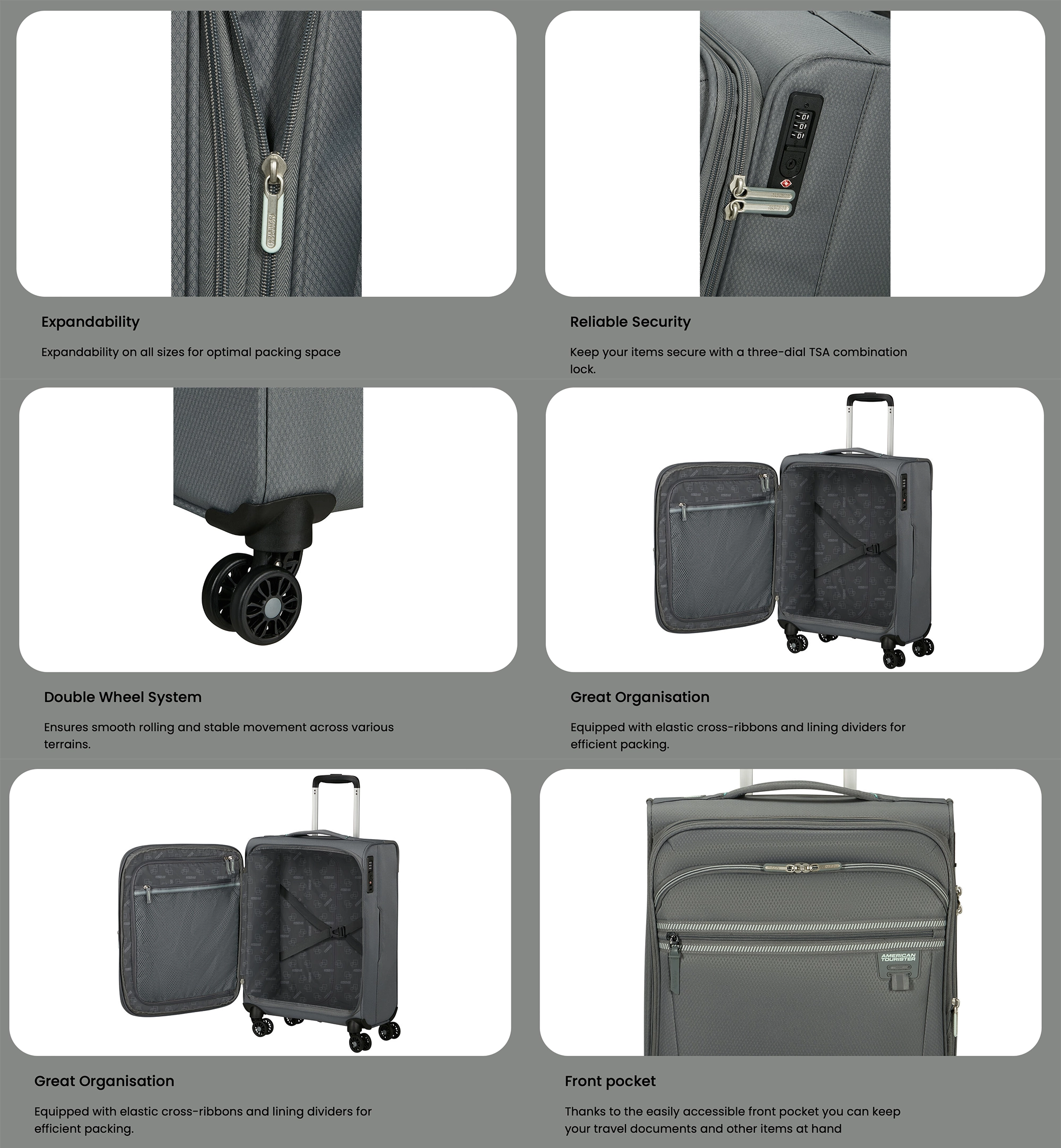 - Warranty* : Limited 3 years Global Warranty against Manufacturer’s Defect* customers are requested to contact the airlines immediately in case they see there has been a damage during their trip* Labour charges are not covered if the AMERICAN TOURISTER has not been purchased at our outlet.