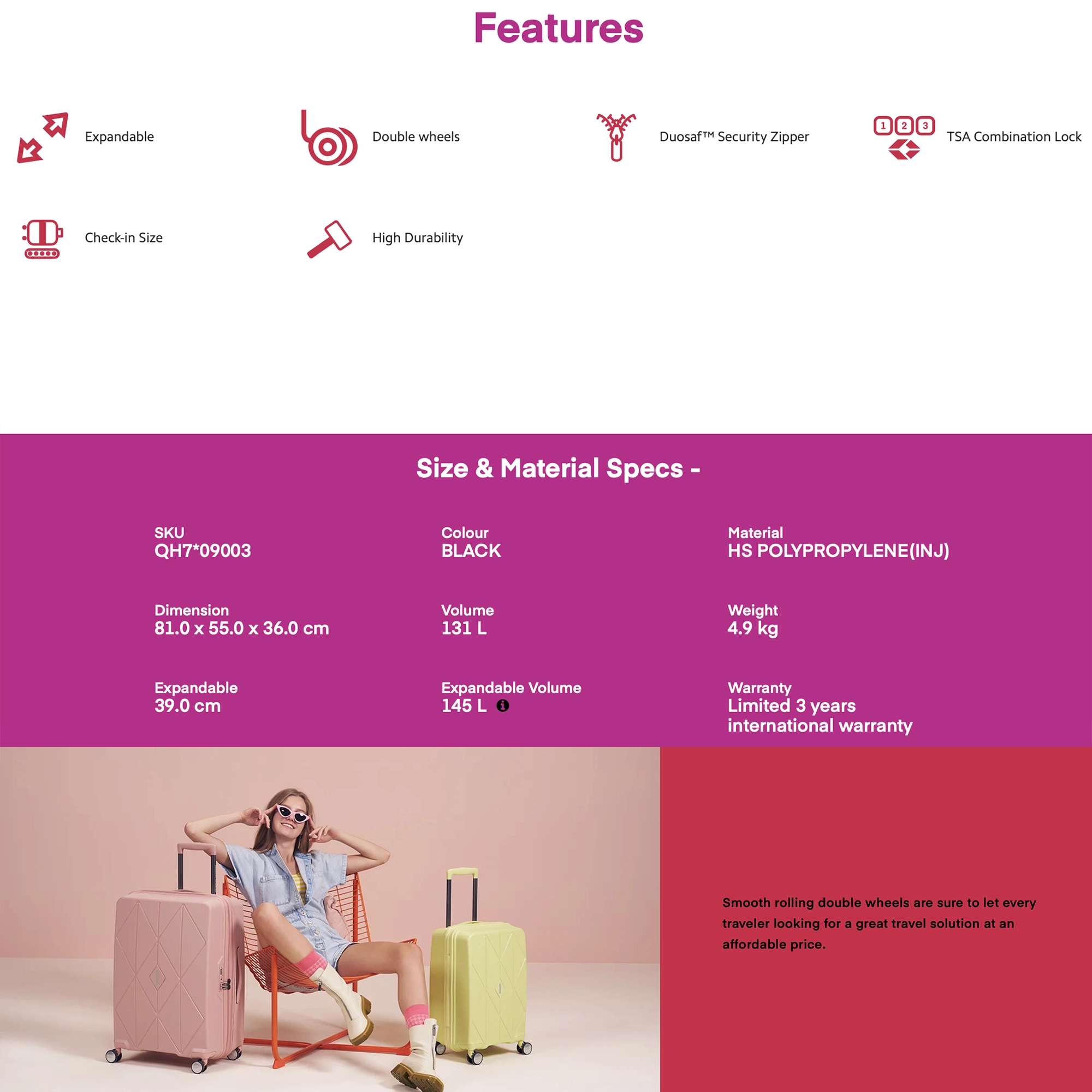 Warranty* : Limited 3 years Global Warranty against Manufacturer’s Defect