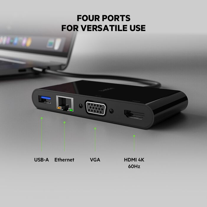Belkin USB-C Multimedia Adapter with Ethernet, USB-A 3.0, VGA, and 4K HDMI ports AVC005BTBK