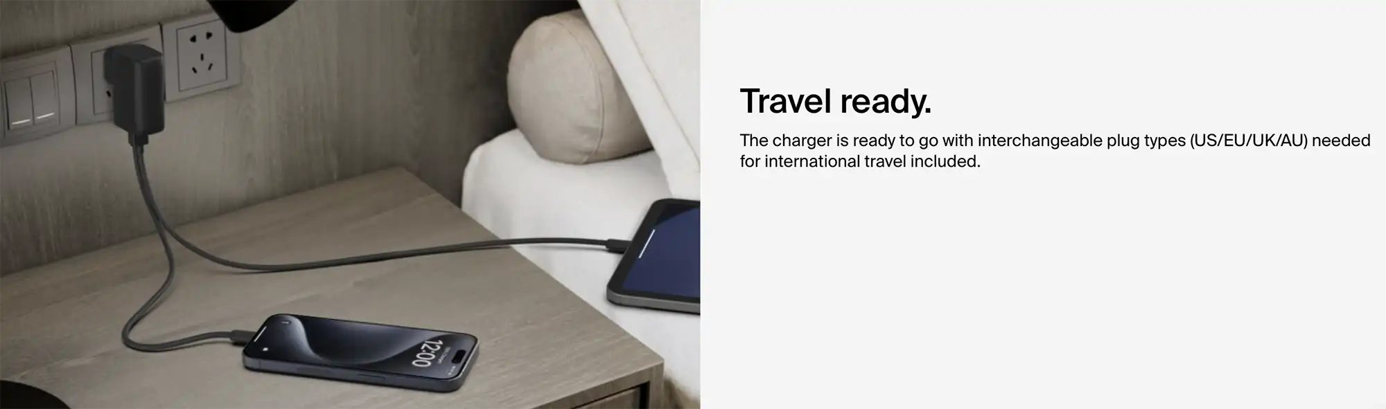 Includes 3.3ft/1m USB-C to USB-C cable and interchangeable regional power plugs (US/EU/UK/AU)