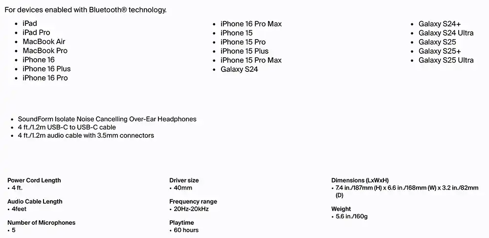 - Hybrid Active Noise Cancellation combines feedforward and feedback microphones to deliver an advanced 25 dB noise reduction