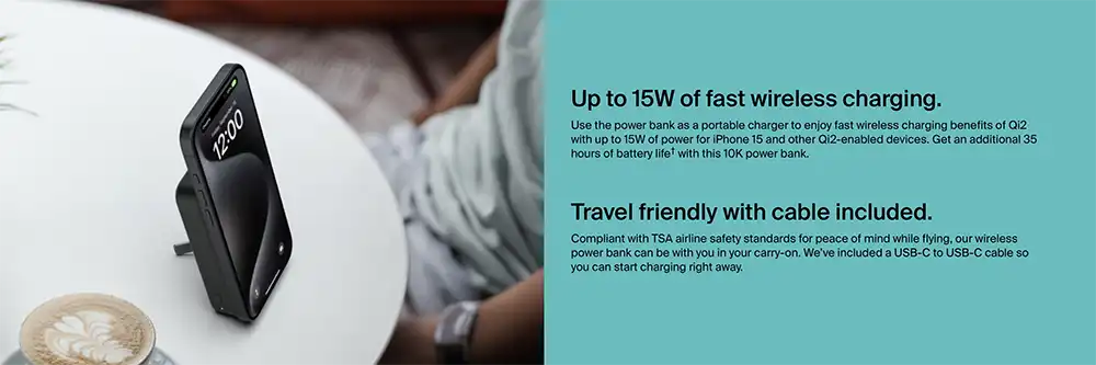 • Up to 15W fast charging with Qi2 for compatible iPhone and other Qi2-enabled devices