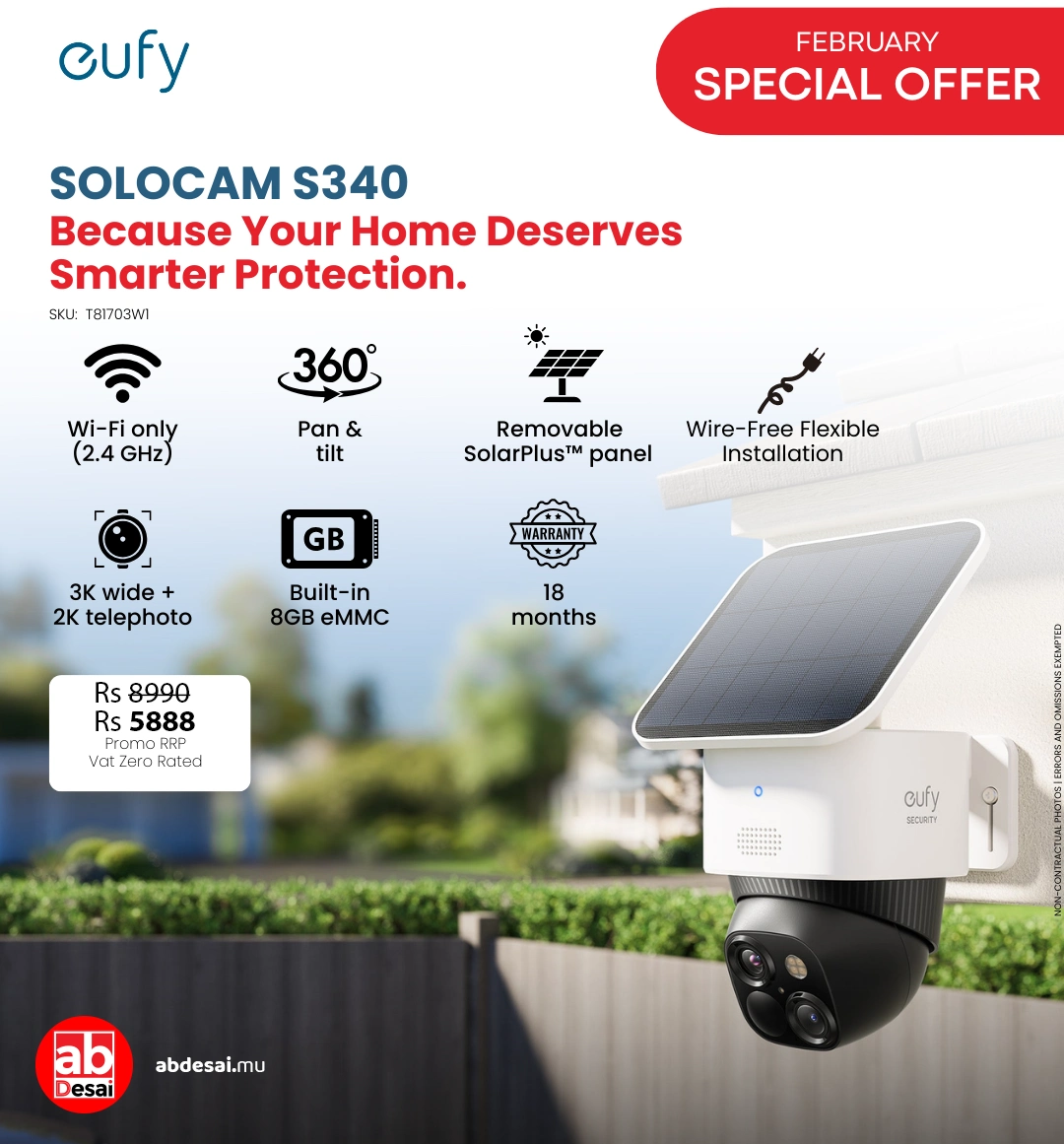 EUFY Security SoloCam S340 B2C – EU/ES/FR/ES Black+White Iteration 1 (T81703W1) + Free RT1526 Rico Search Light