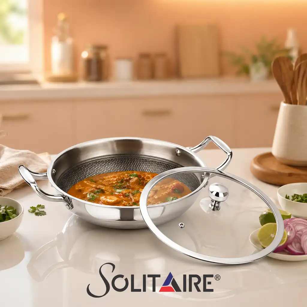 SOLITAIRE Non Stick Triply Stainless Steel Honey Comb Wok 20cm HCKGL01