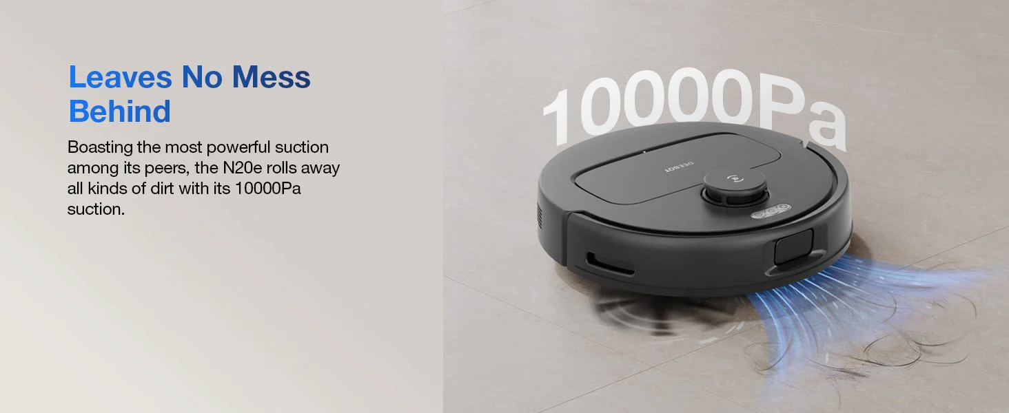 The N20e is a blend of precise cleaning technology and modern sophistication. Featuring the advanced Zero-Tangle Anti-Tangle Technology 2.0, it ensures that cleaning efficiency remains at 99.8%x. With the effortless ECOVACS Pure-Cyclone Technology at their core, the new N20e offers a transformative cleaning experience that elevates your home’s cleanliness to unprecedented levels. Get ready to elevate your cleaning experience with the N20e, a combination of meticulous engineering and refined simplicity.