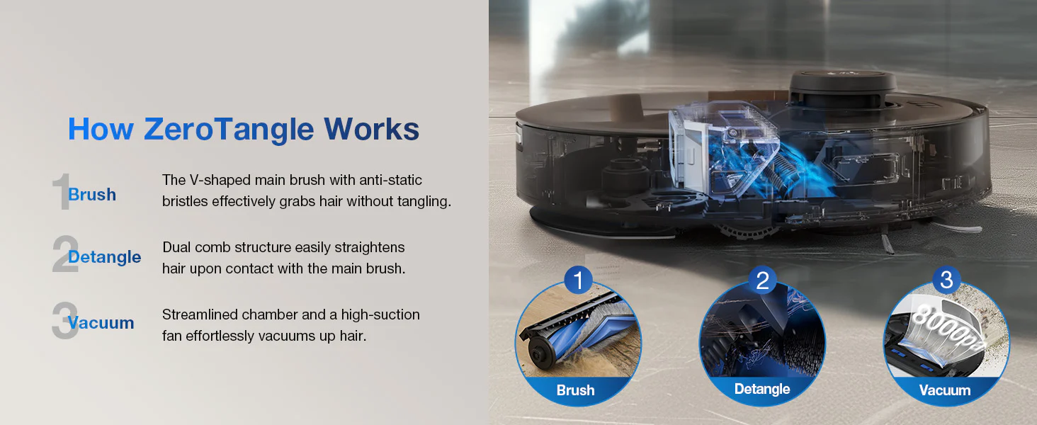 - Anti-Tangle Brush Roller Features