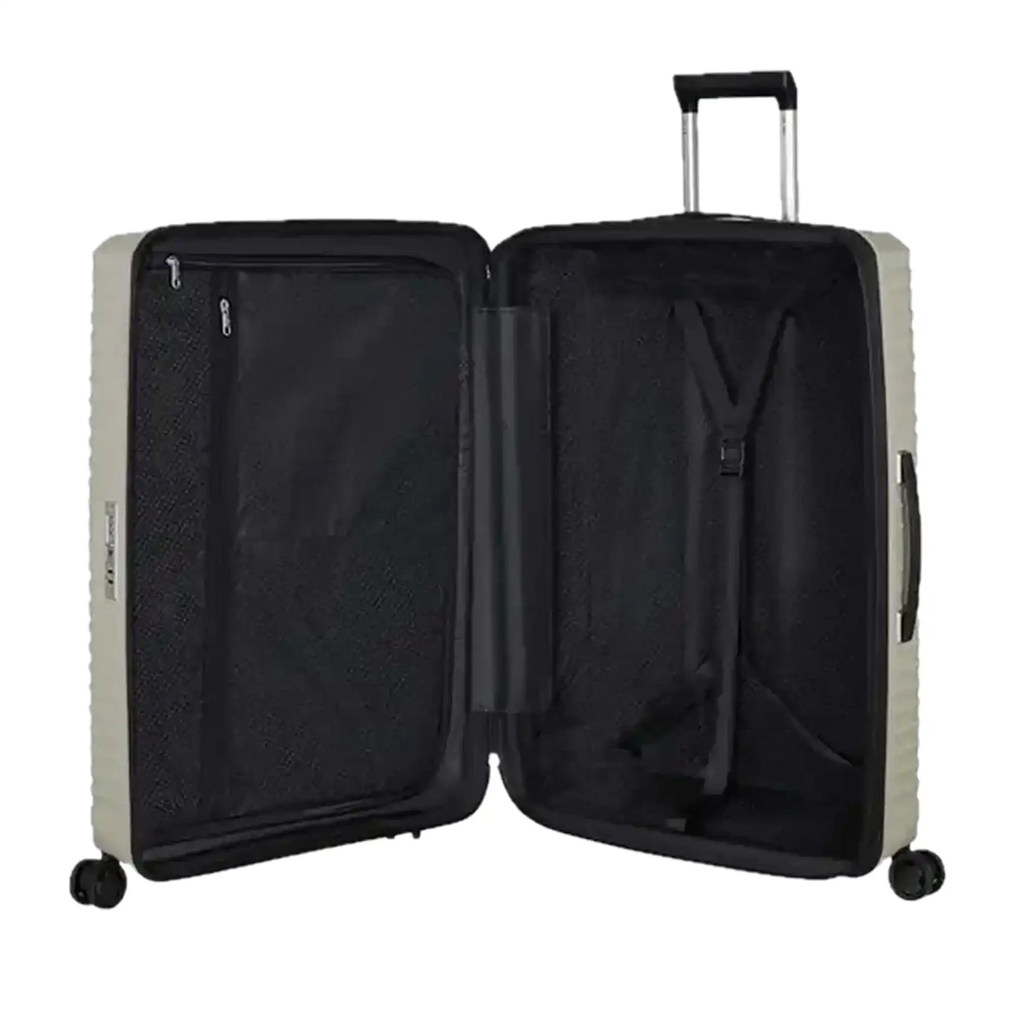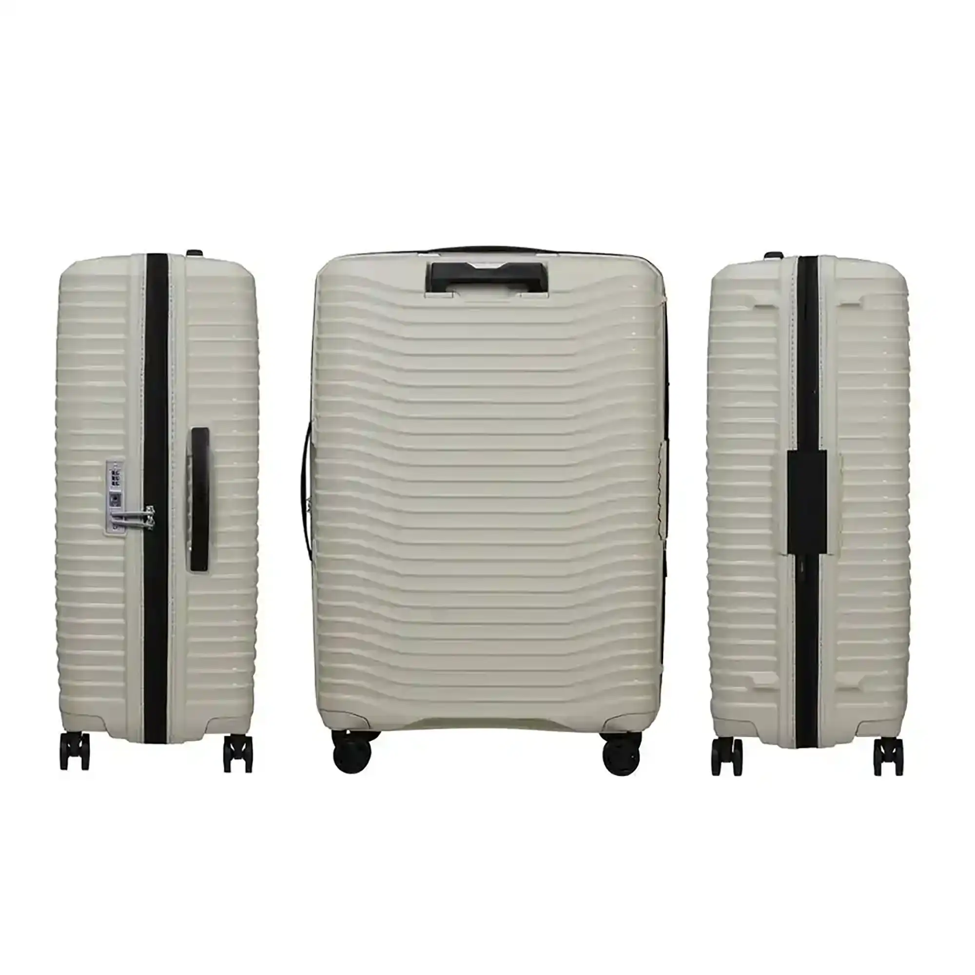 Upscape is light but packed with convenient travel features. Inside its spacious interior is a fixed divider with 2 mesh pockets. The interior lining is made with Recyclexâ„¢ and is also removable and washable. Need more space? Use the expander to store even more. Then keep everything secure with the integrated 3-digit TSA lock 008. Upscape is equipped with shock-absorbing wheels for smooth movement, and top and side handles for easy carrying.