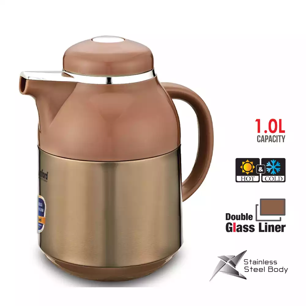 - 1.0L Capacity, Stainless steel bady, keep hot and cool, Double glass liner