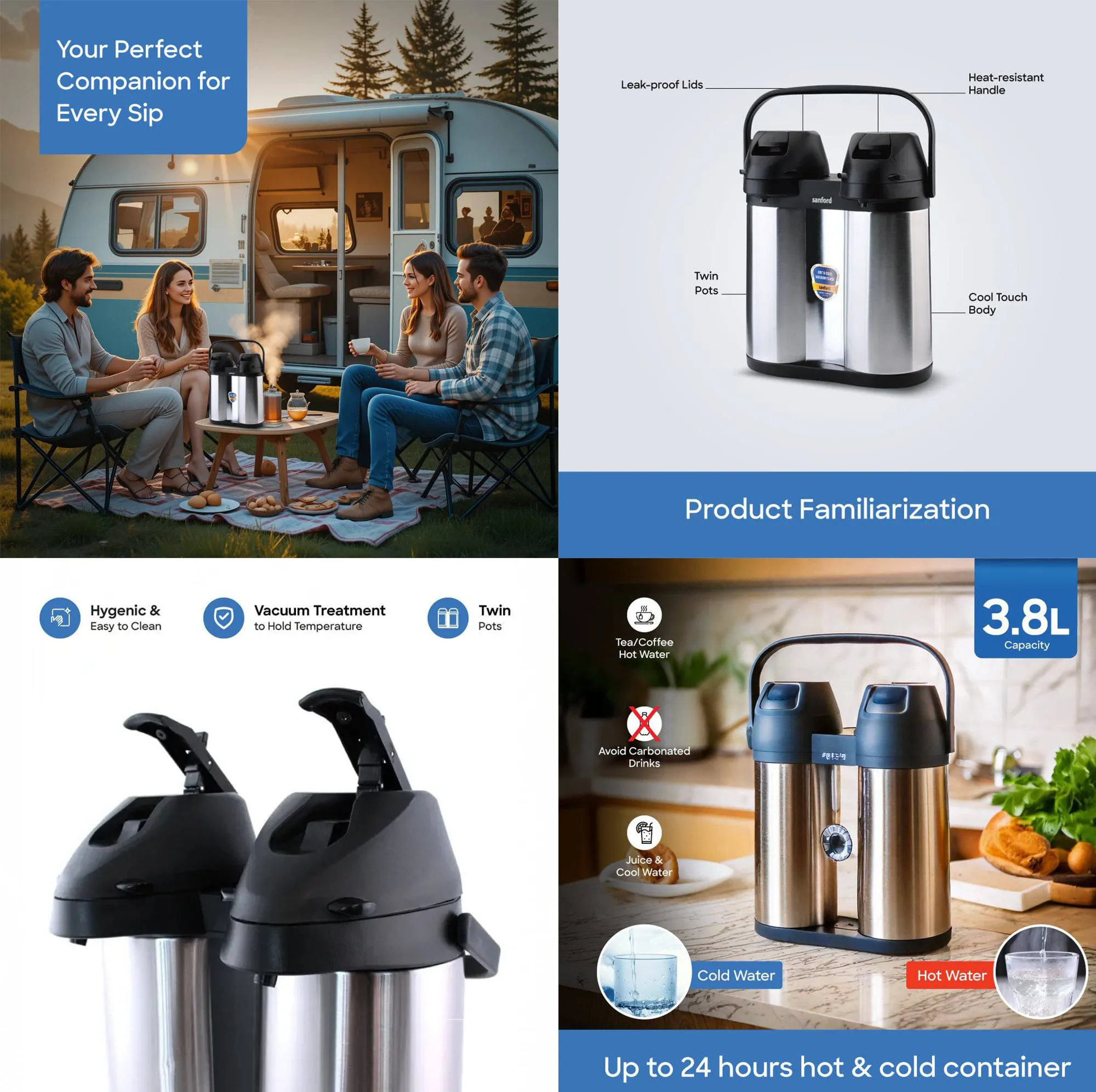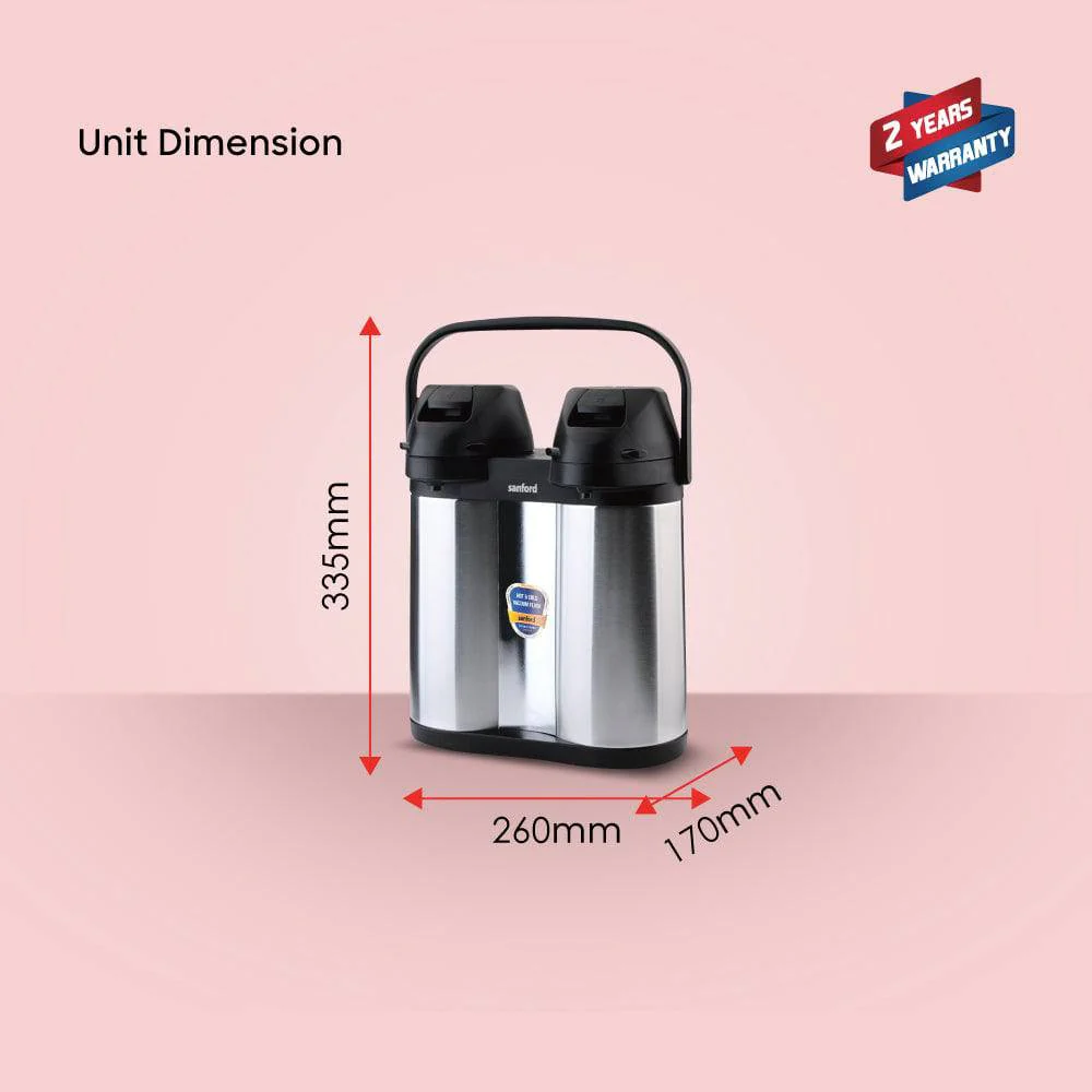 SANFORD 3.8 Litre Twin Vacuum Flask for Hot & Cold Drinks – Stainless Steel with Dual Pour Design SF1642AVF + FREE SF3343EK Kettle