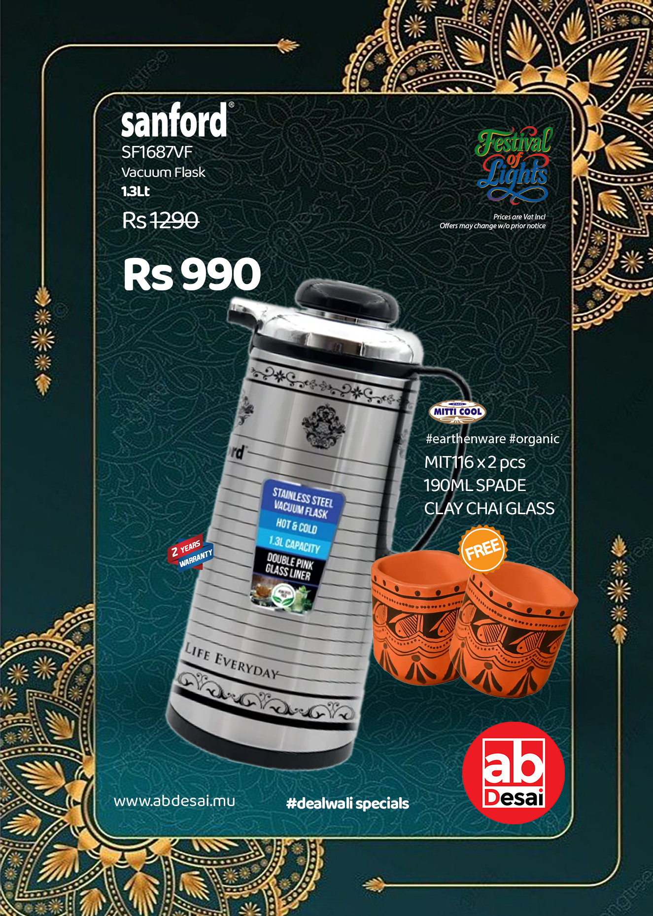 SANFORD Vacuum Flask 1.3Lt SF1687VF + 2pcs MIT116