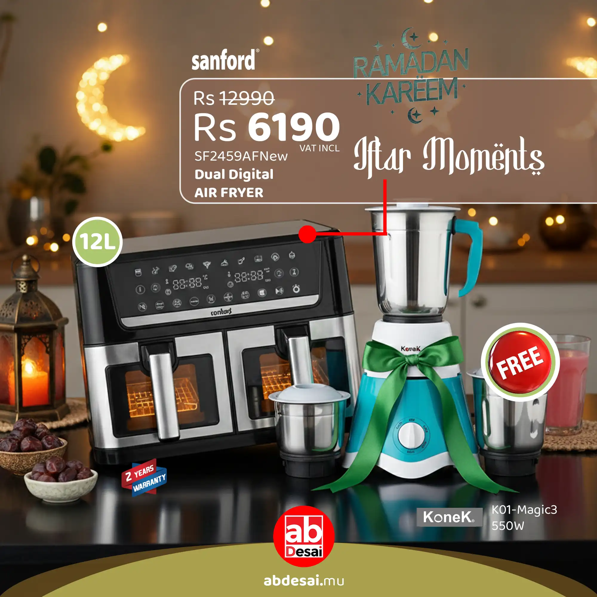 SANFORD Air Fryer 12Lt Dual Digital SF2459AF + K01 Free Mixer Grinder
