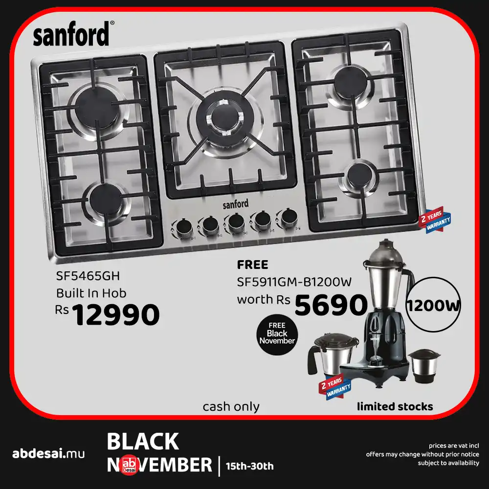SANFORD Gas Hob Five Burner with Blue Flame & Auto Ignition SF5465GH + Free SF5911GM-B1200W worth Rs 5690
