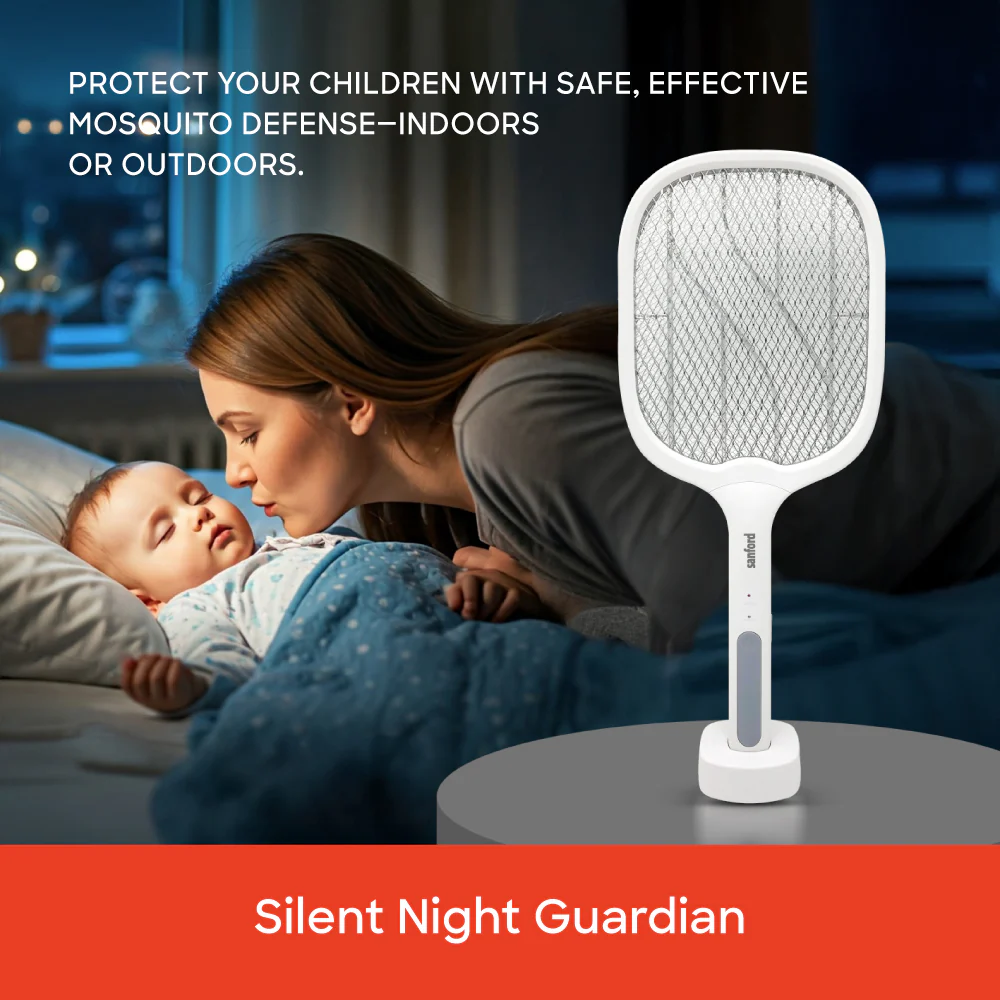 Protect your family with the Sanford Rechargeable Mosquito Bat with Stand (SF635MK), engineered for safe and efficient mosquito control. Equipped with a 3500V high-voltage zapping grid and an advanced UV LED mosquito trapping light, it eliminates flying insects instantly and effectively. Its lightweight design with a dedicated stand ensures convenience and easy storage.