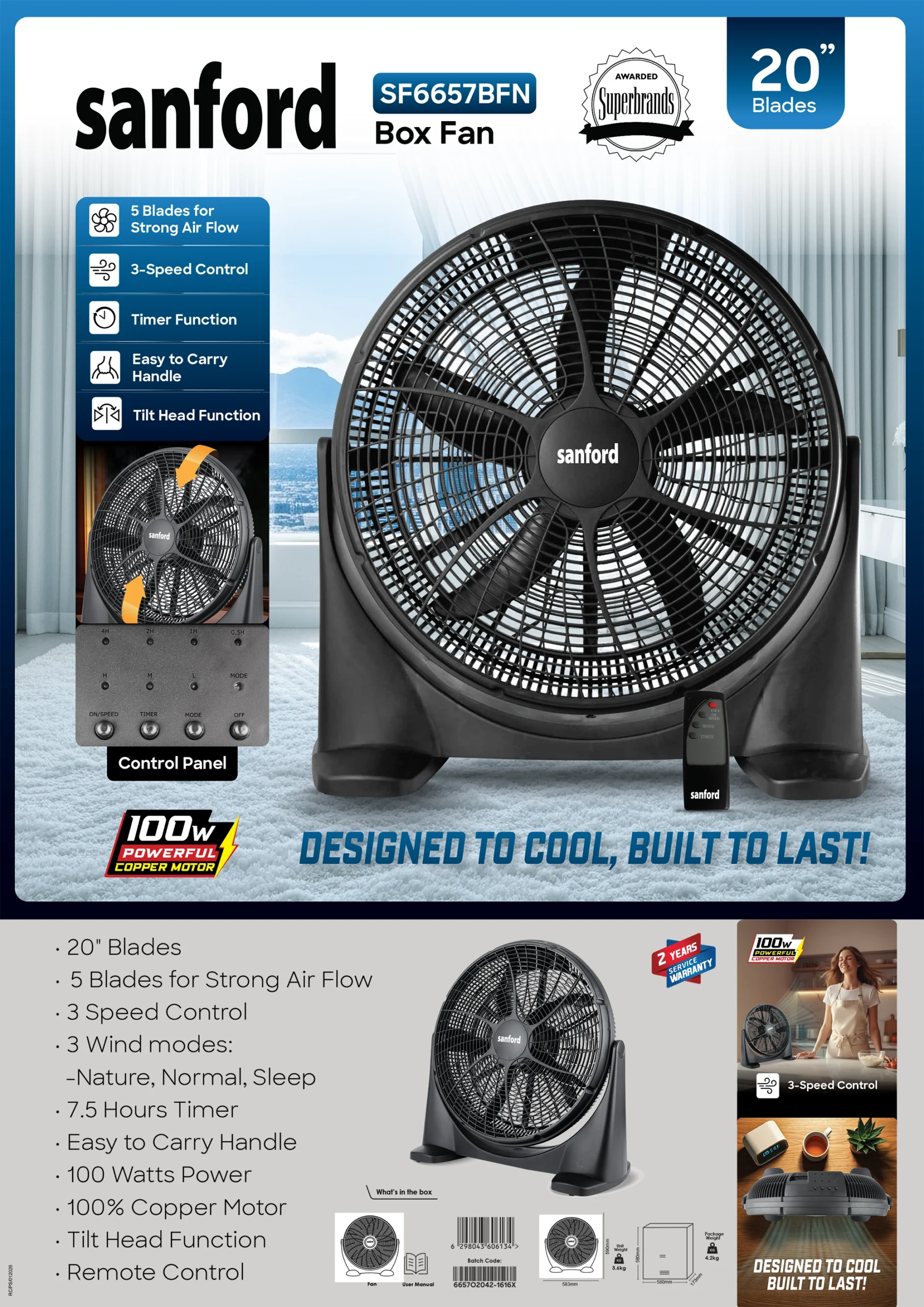 SANFORD Box Fan 20 inches with Remote Control SF6657BFN