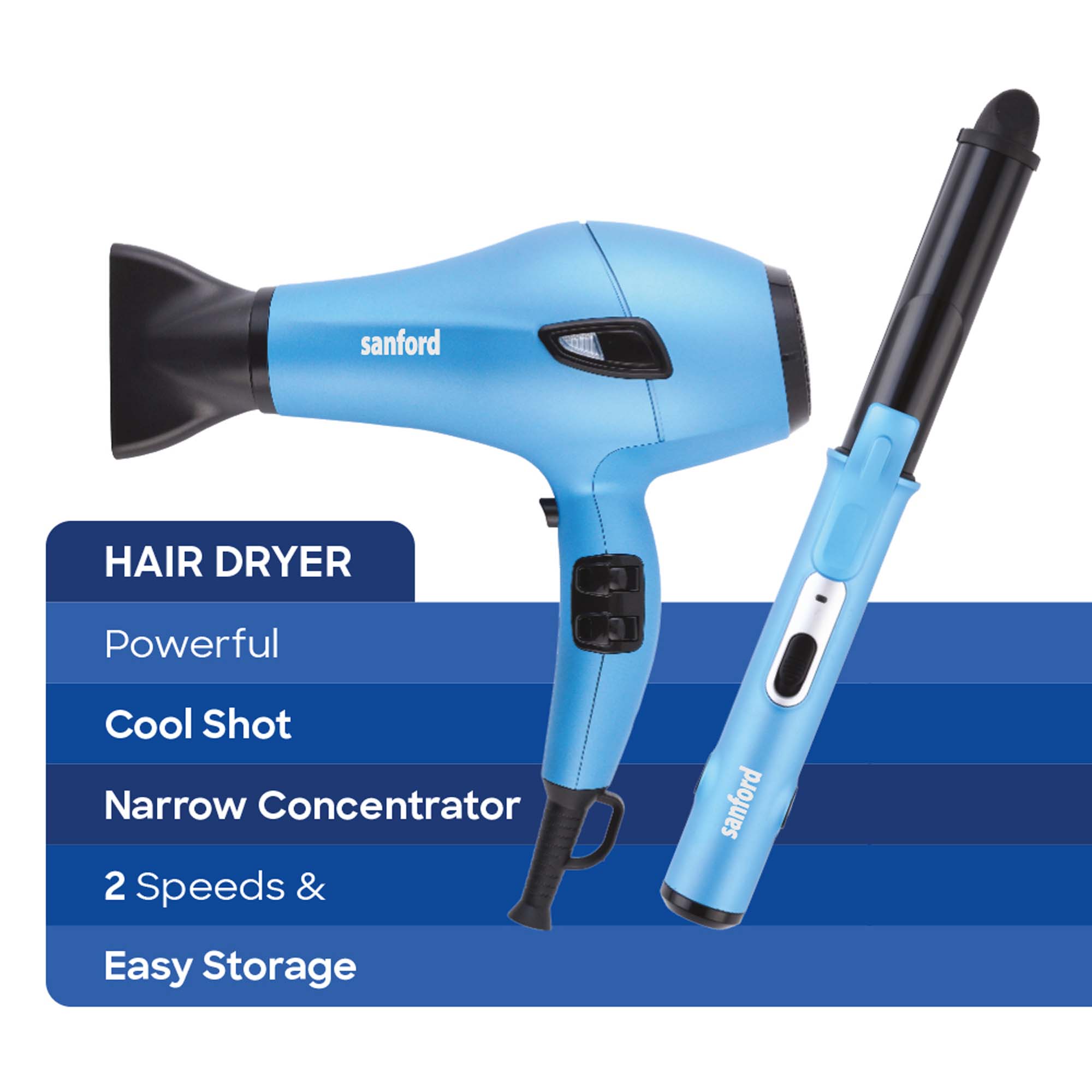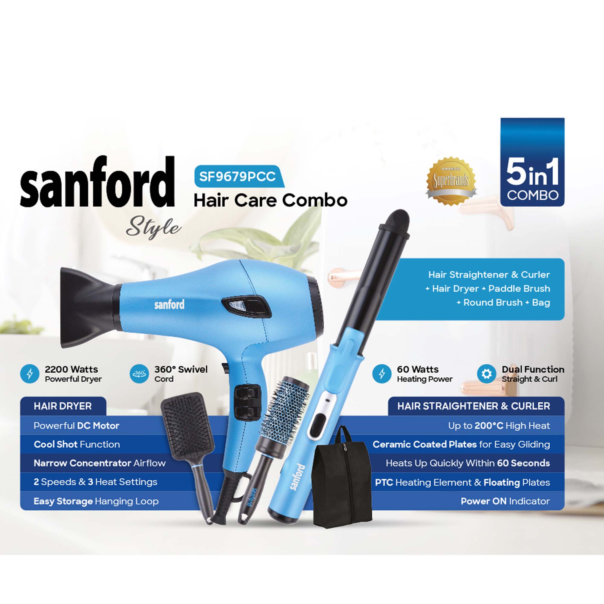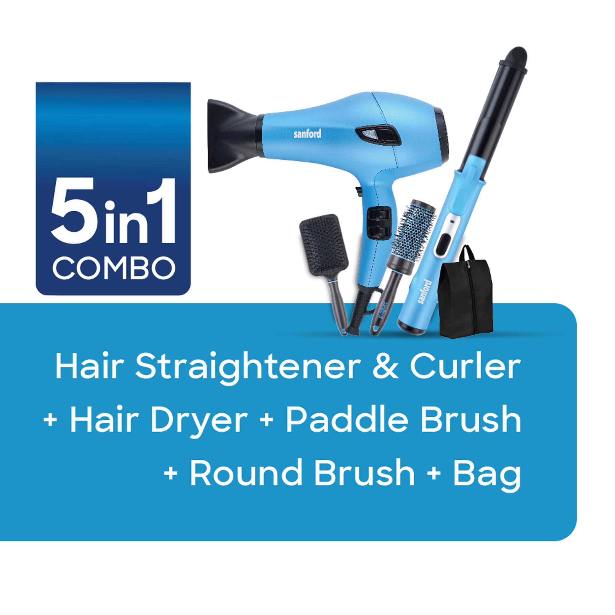 SANFORD 5-in-1 Hair Styling Set | 2000W Hair Dryer + 2-in-1 Straightener & Curler | Cool Shot | Ceramic Plates SF9679PCC