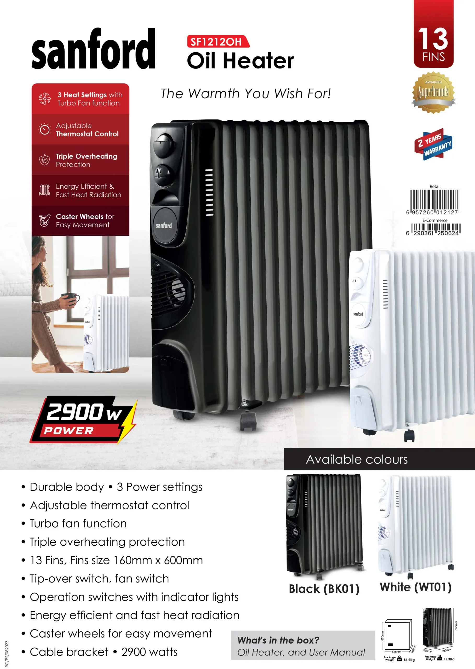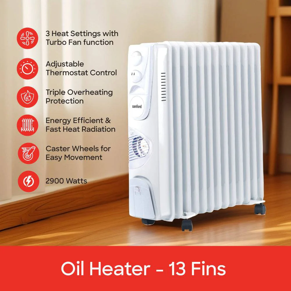 SANFORD Oil Heater 13 fins with turbo fan SF1212OH-13F White + Free Wall Fan SF932WFN