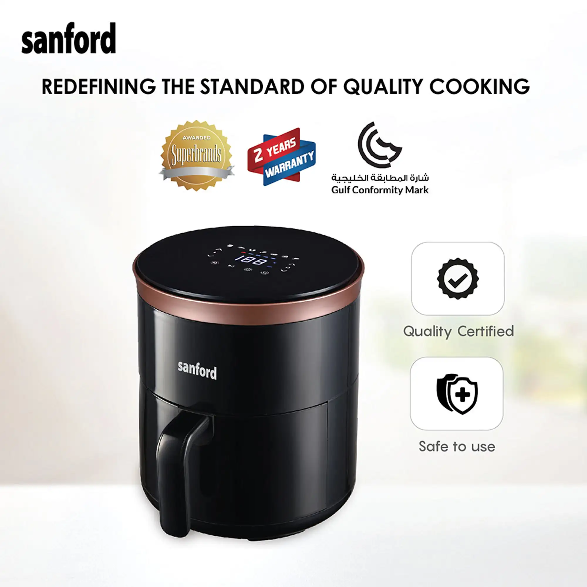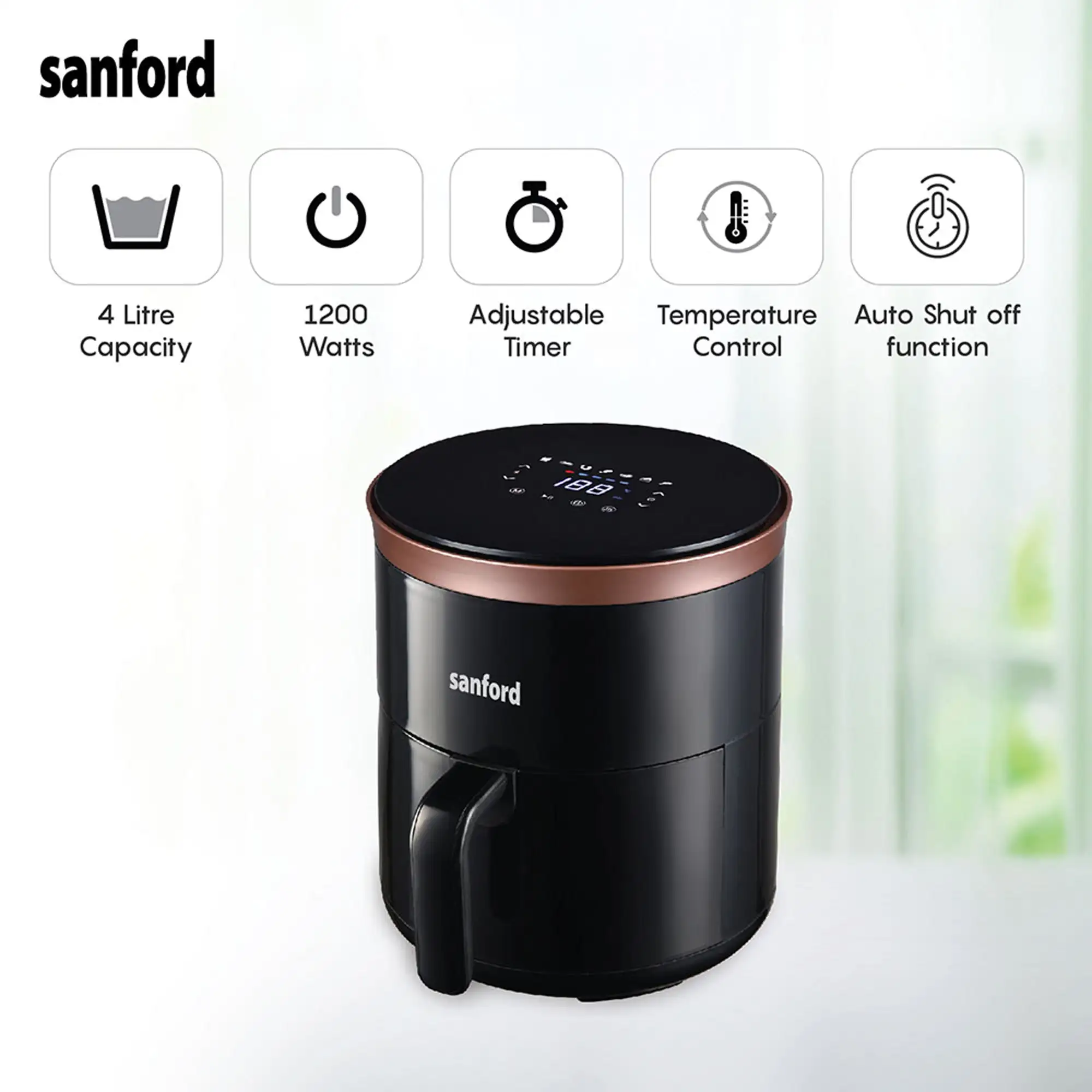 SANFORD 4L Digital Air Fryer with LED Display and Non-Stick Basket SF2455AF Black