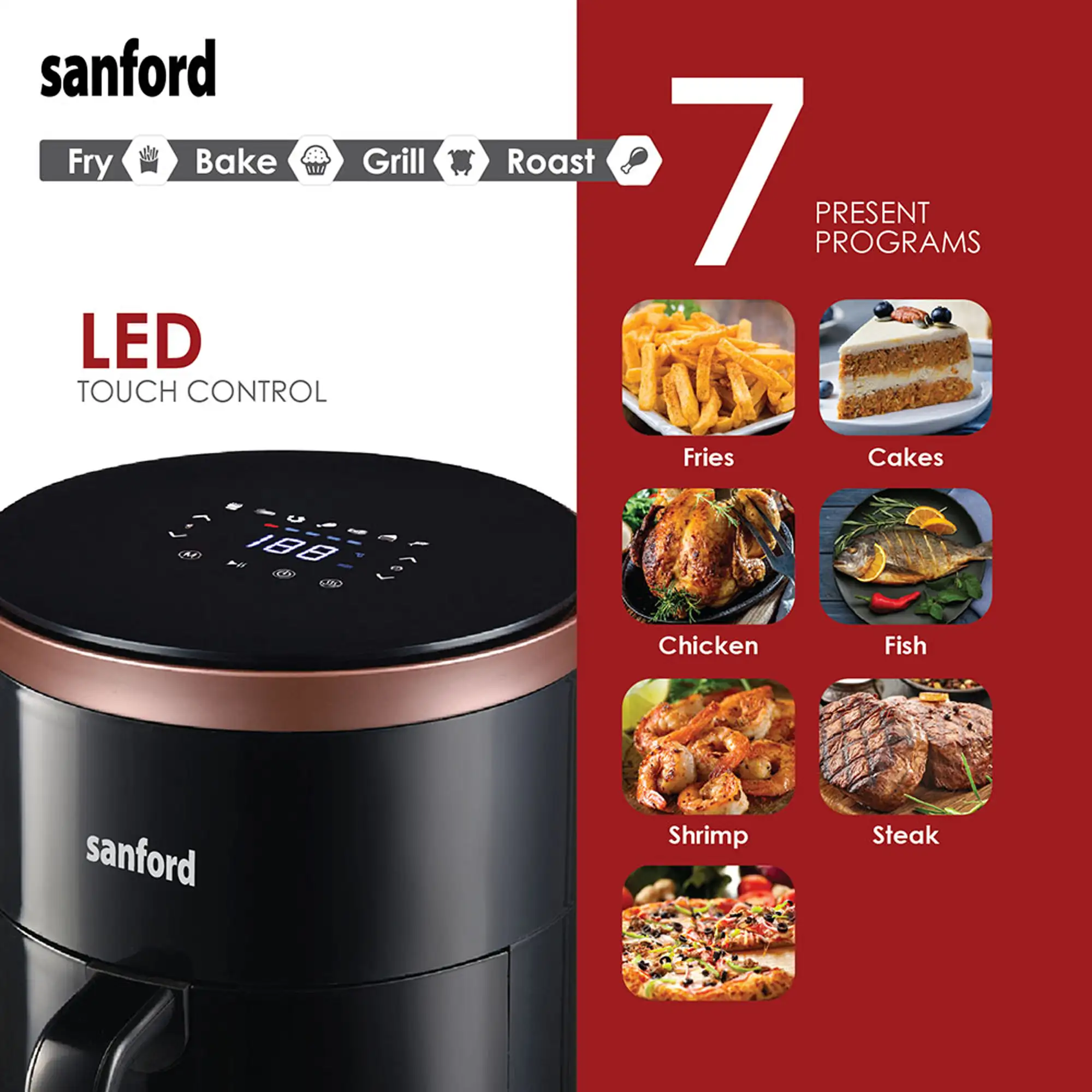 - LED Digital Display: Clear and easy-to-read interface for precise cooking control.