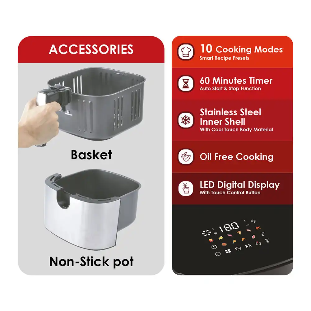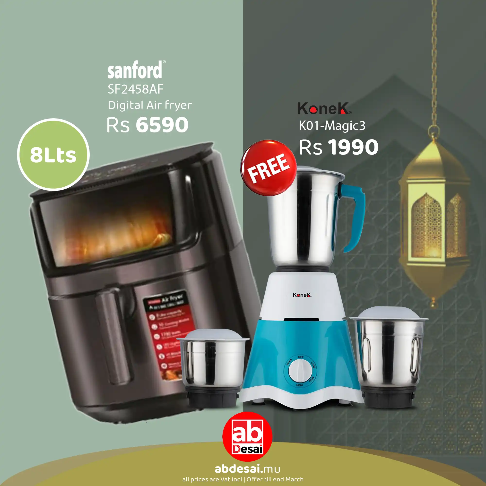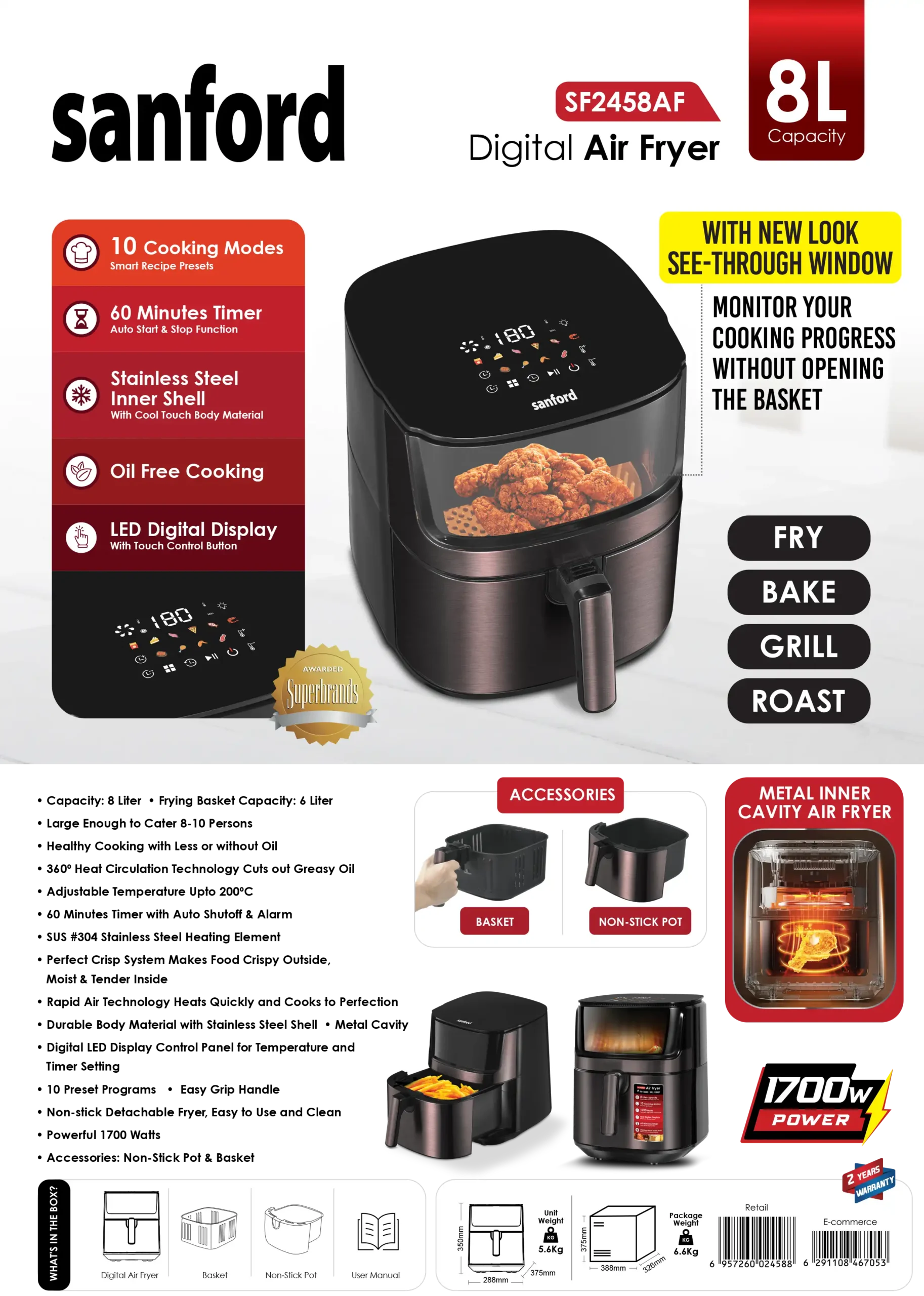 SANFORD 8L Digital Air Fryer with LED Display and Non-Stick Basket SF2458AF + Free K01 Mixer Grinder worth Rs 1990