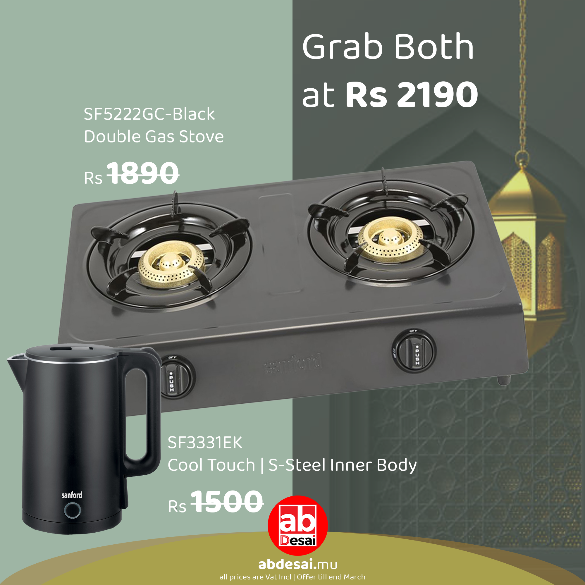 SANFORD Gas Stove SF5222GC Black + Kettle Sf3331Ek worth Rs 1500 (as per colour available)