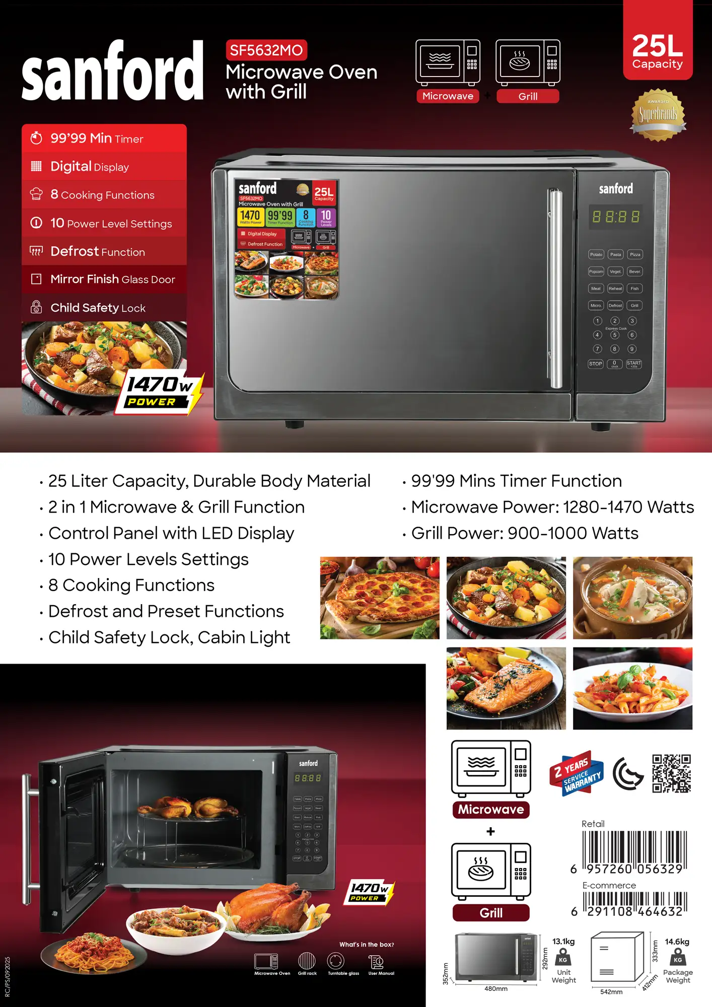 SANFORD Microwave 25Lts Digital Mirror Finish Glass Door SF5632MO