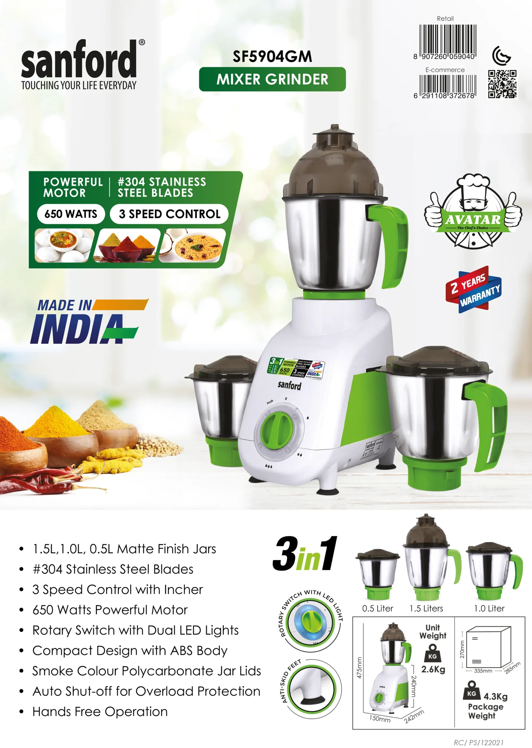 SANFORD Mixer Grinder Powerful 650W SF5904GM