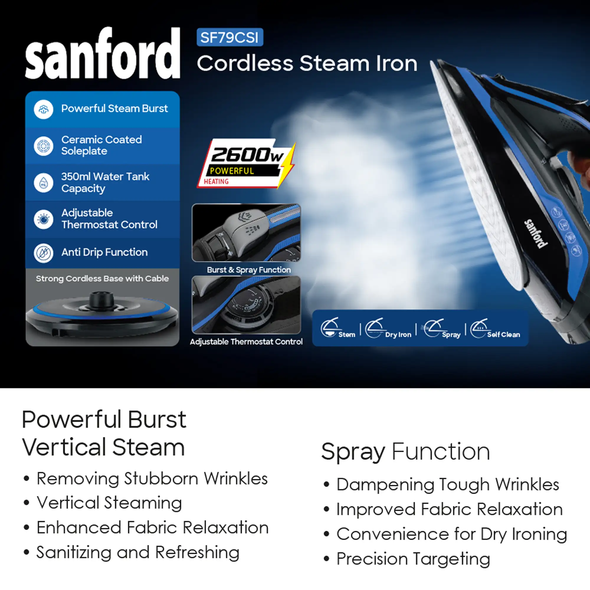 SANFORD Steam Iron Cordless SF79CSI Black Blue