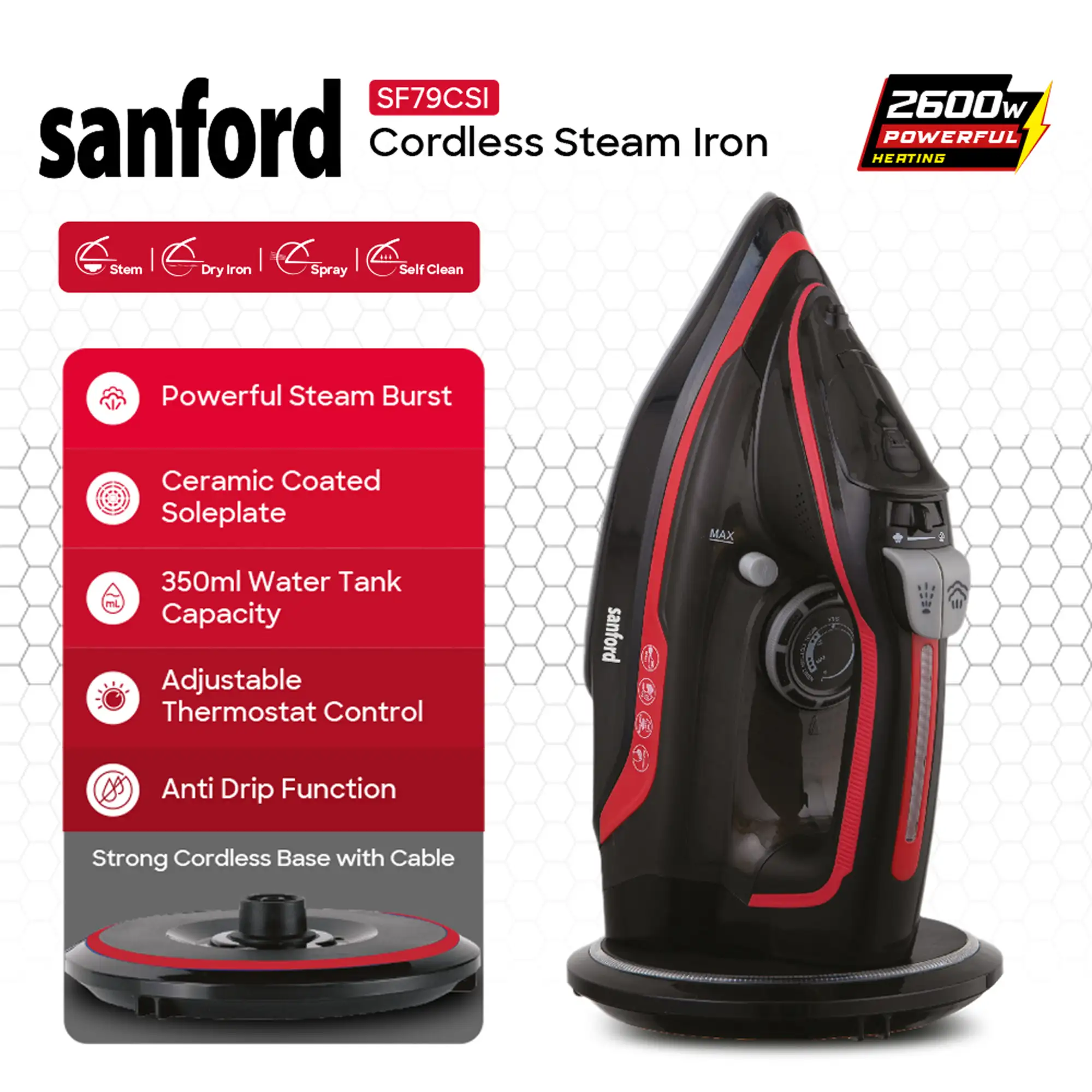 SANFORD Steam Iron Cordless SF79CSI Black Red