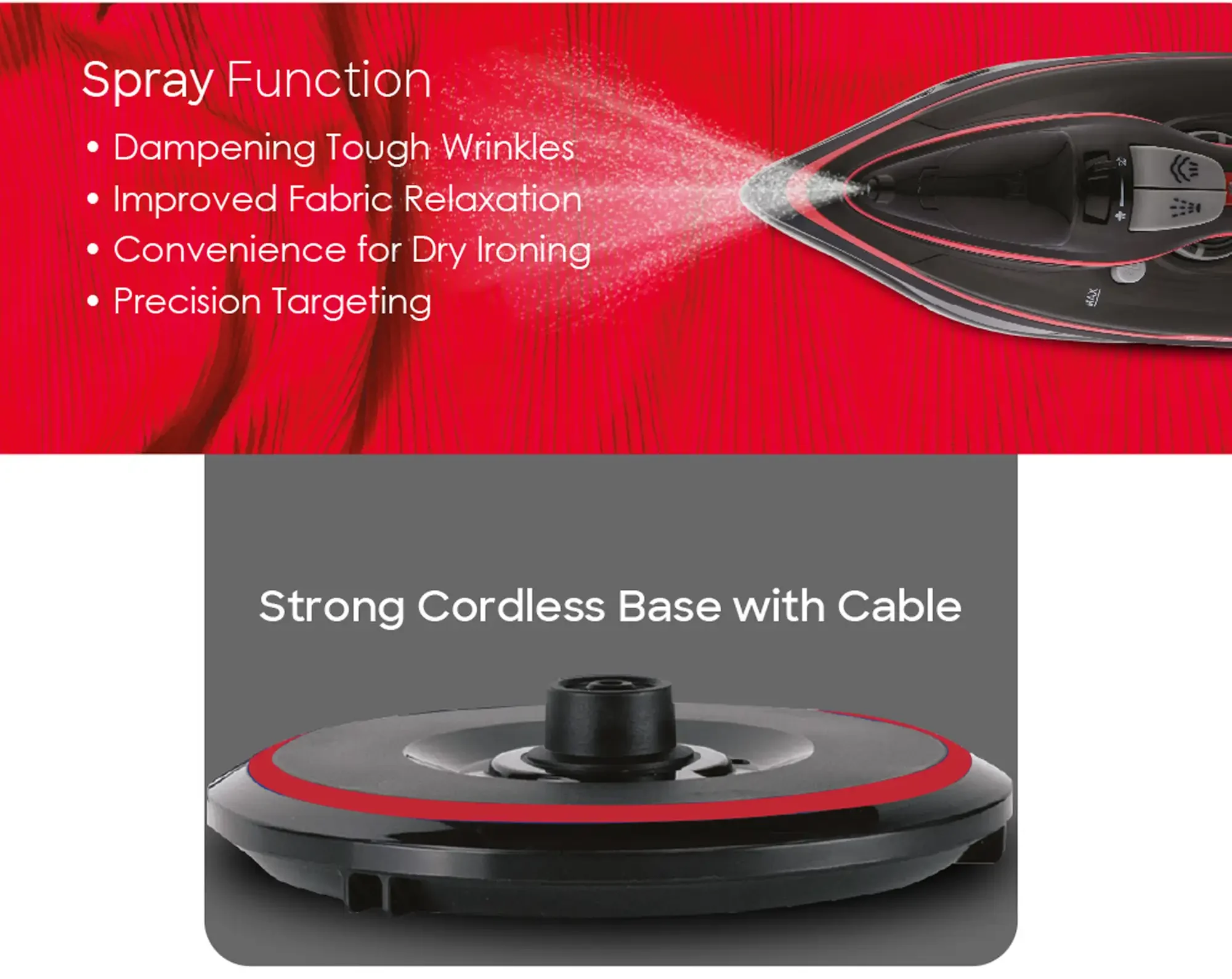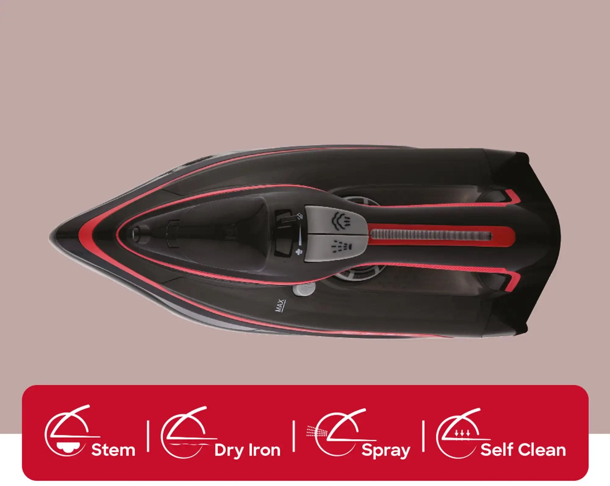 - Dry Ironing I Spray I Steam Function.
