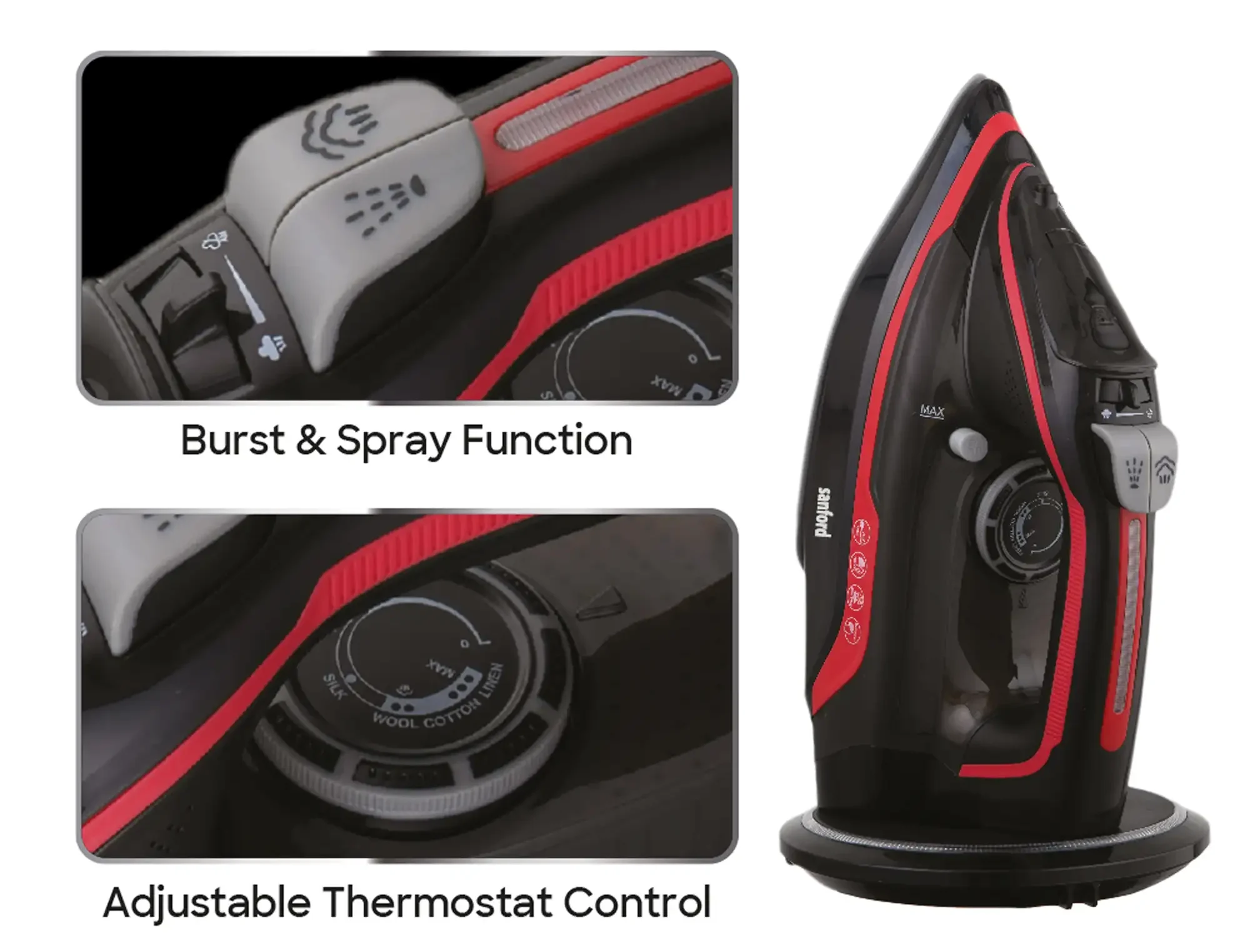 SANFORD Steam Iron Cordless SF79CSI Black Red
