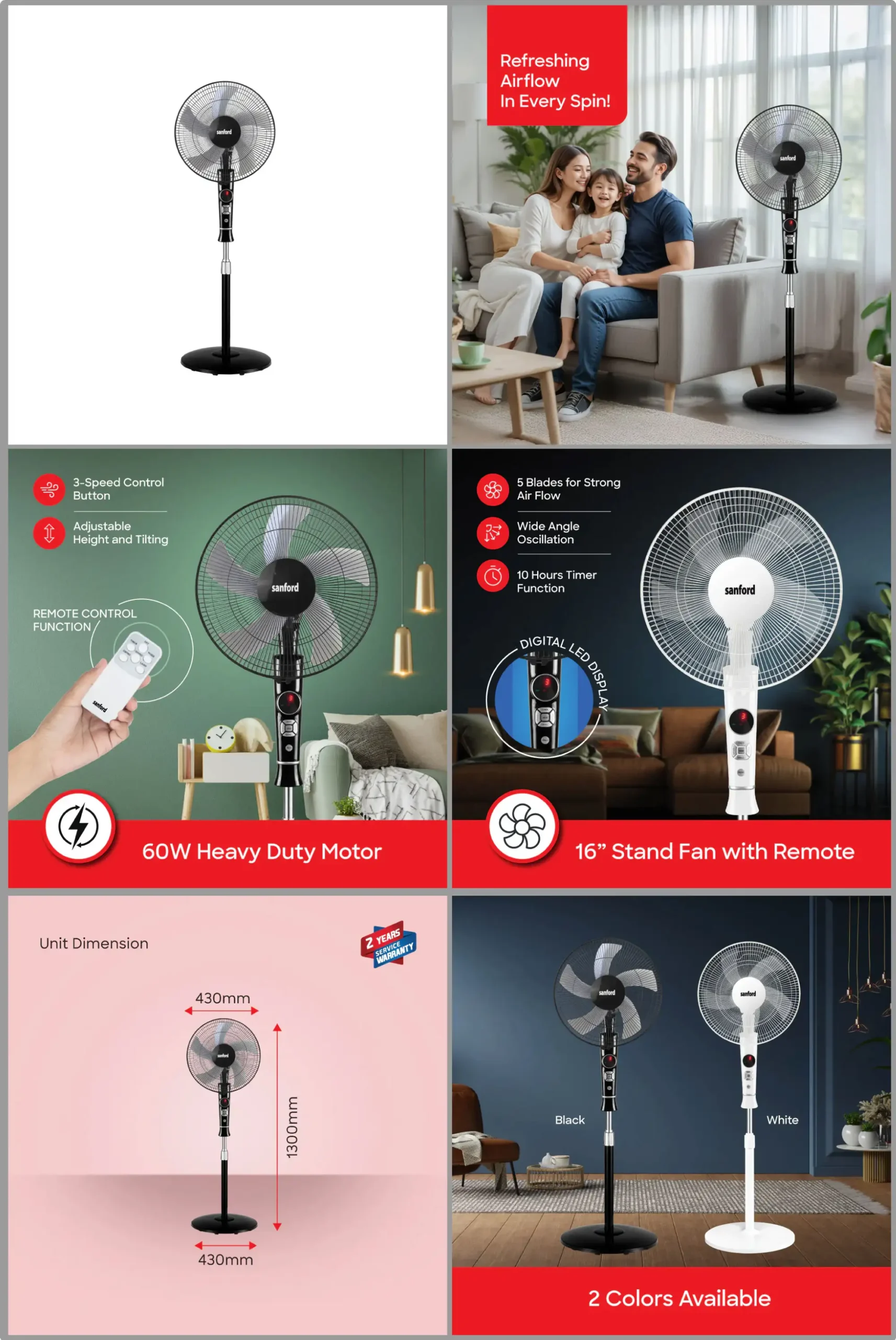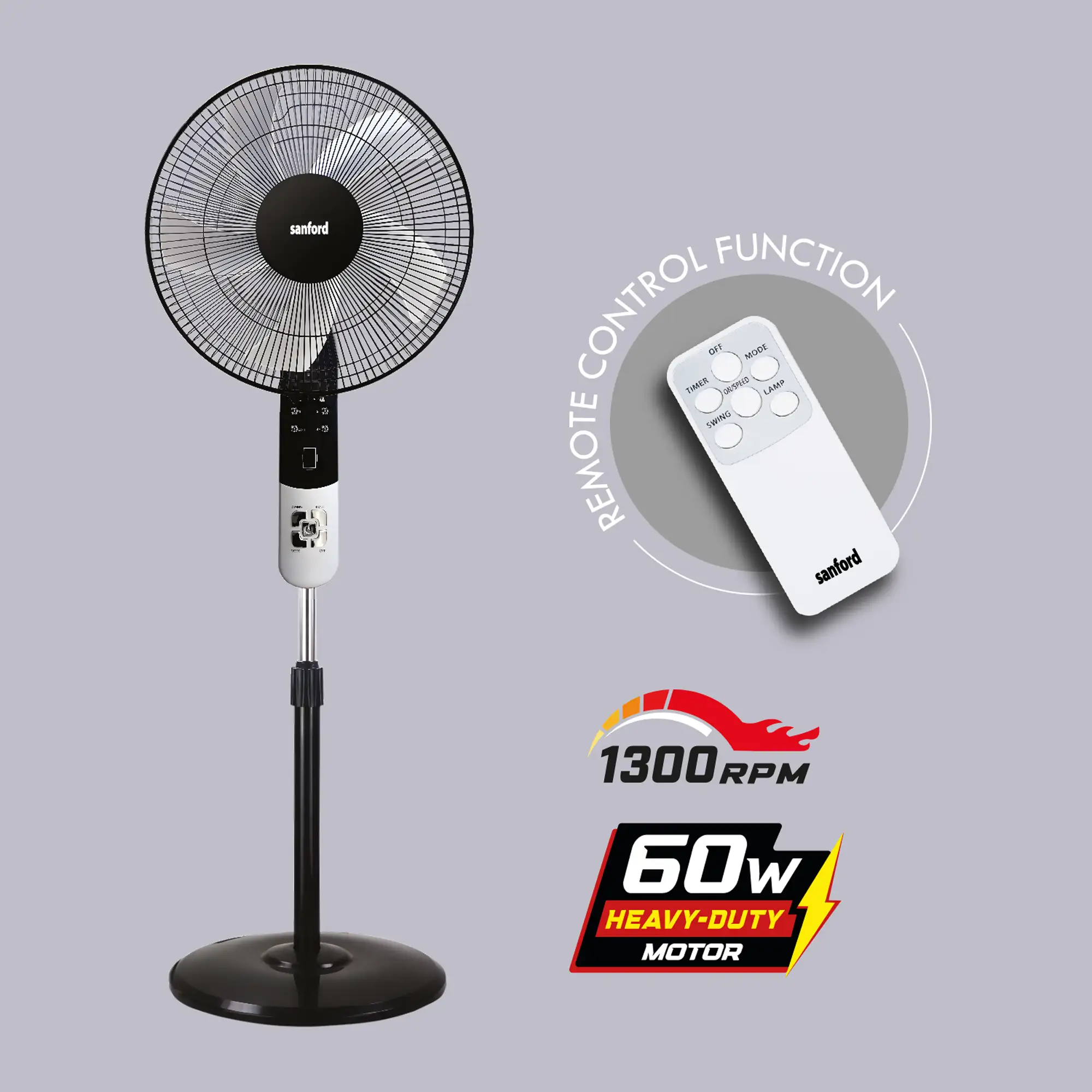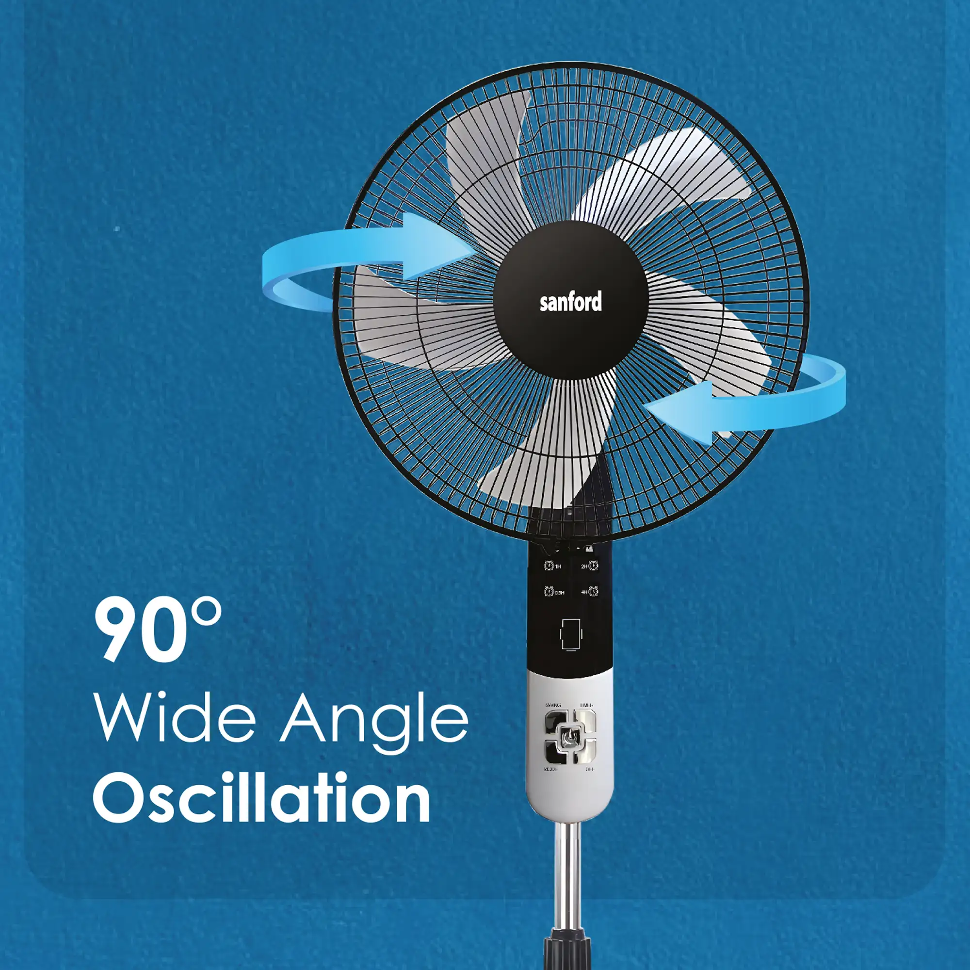 SANFORD 16 inch 5 blade Stand Fan with Remote SF903SFN Black + Free Hand Fan SF936HFN-Square worth Rs 590