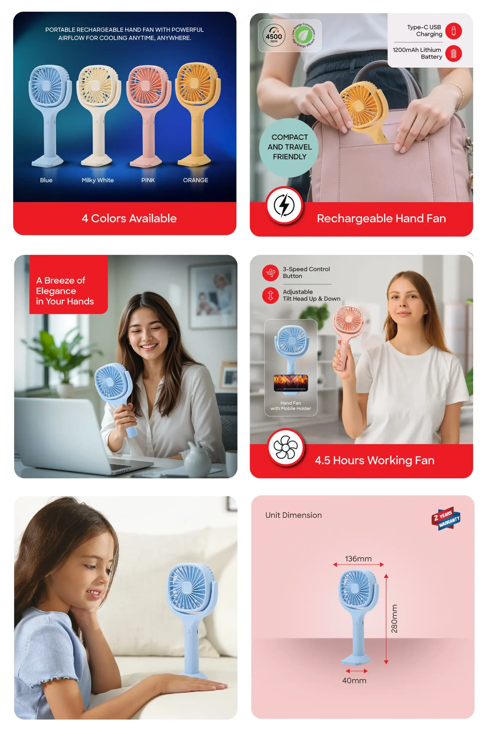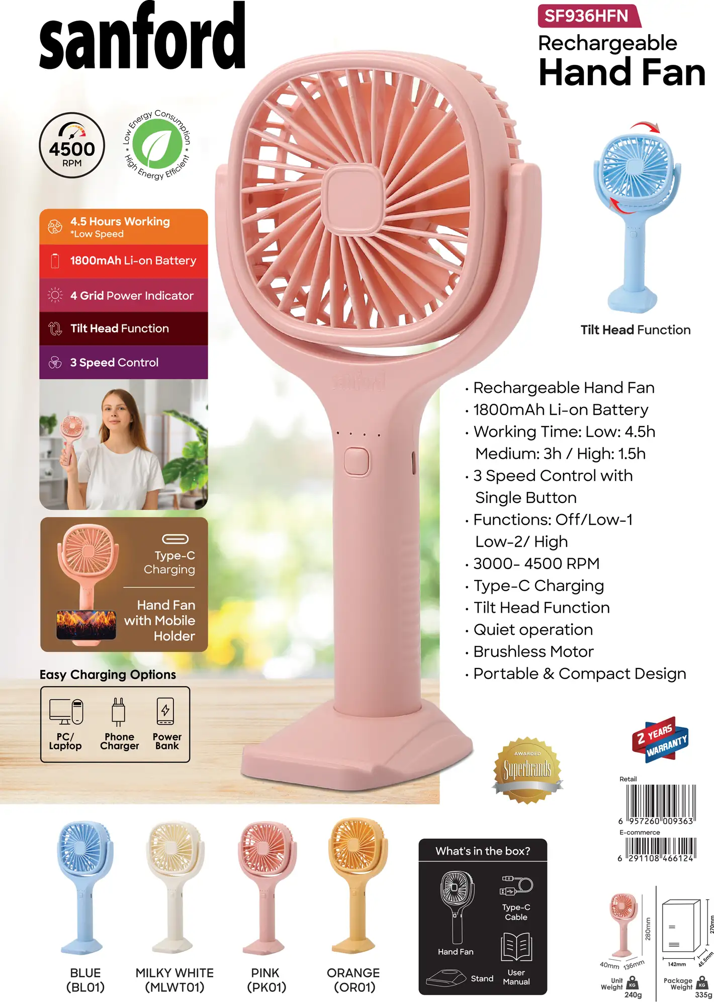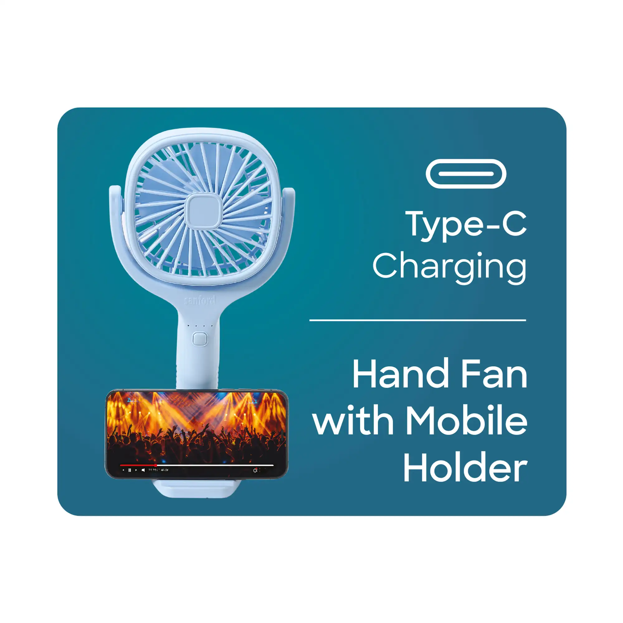 SANFORD Rechargeable Hand Fan Combo | With Mobile Holder & Compact High-Speed Fan | USB-C Charging | 3-Speed | Portable Design SF936HFN – Optional Add Rs 200 Get one Hand Fan SF935HFN worth Rs 490