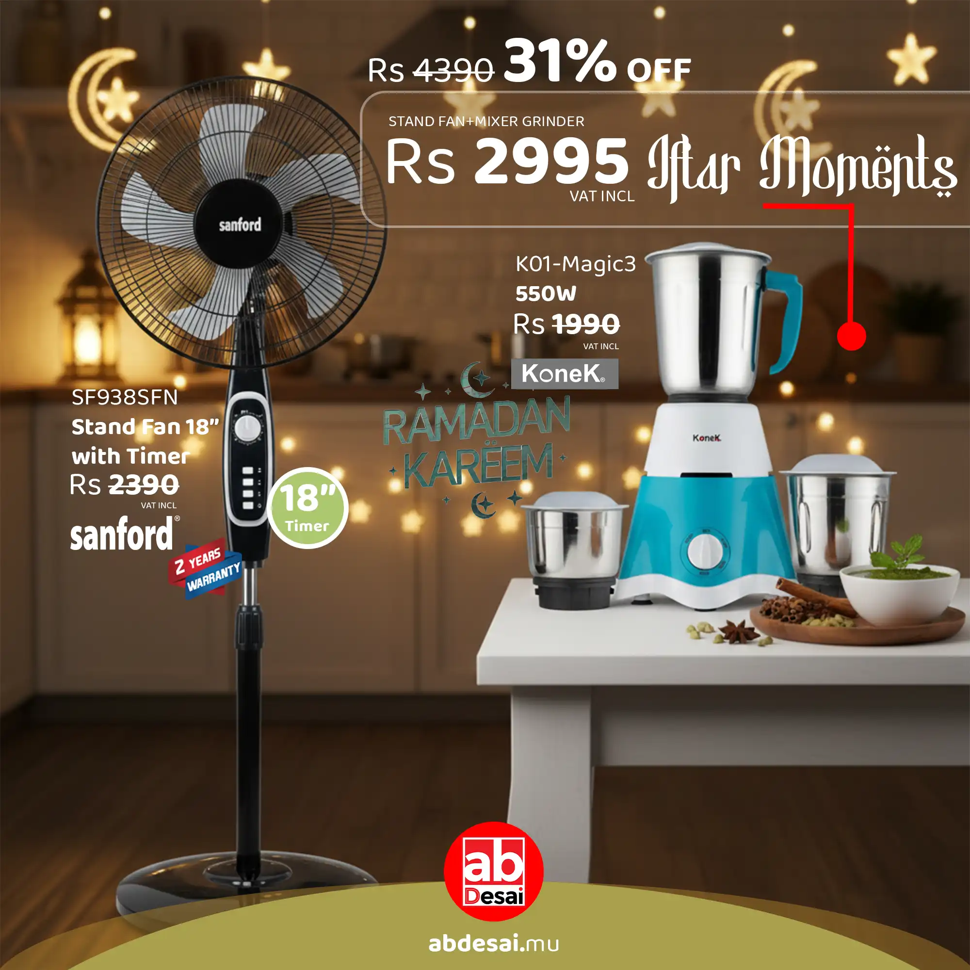SANFORD 18 inch 5 blade Stand Fan with Timer SF938SFN + K01 Mixer Grinder