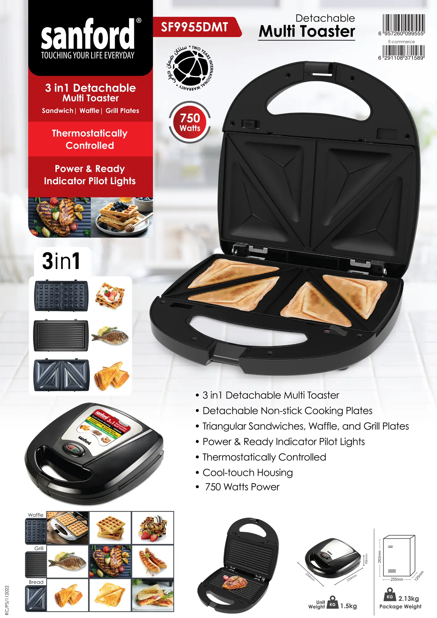 SANFORD Detachable Multi Toaster 3in1 SF9955DMT