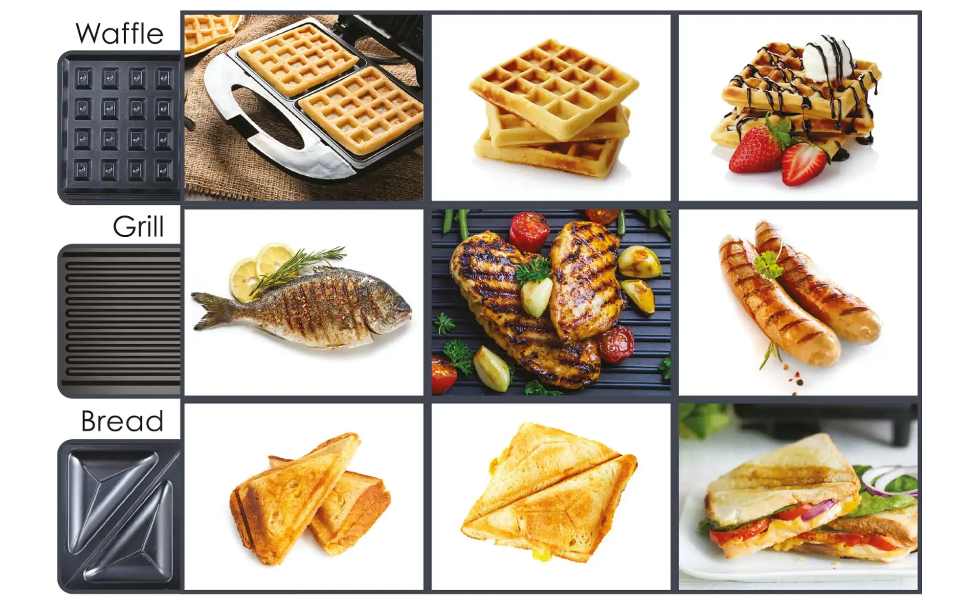- 3 in 1 Detachable Multi Toaster.