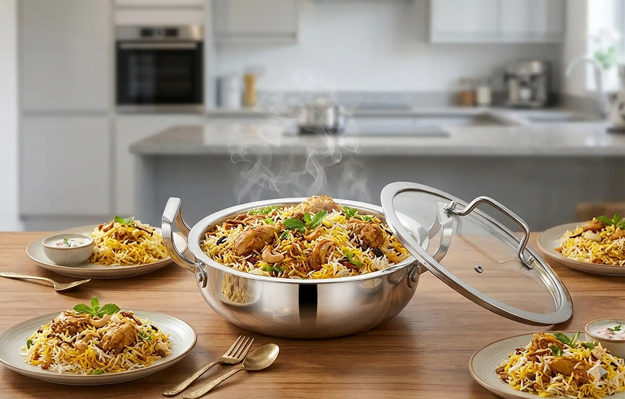 SOLITAIRE Triply Biryani Pot with Glass Lid 22cm TPBP02
