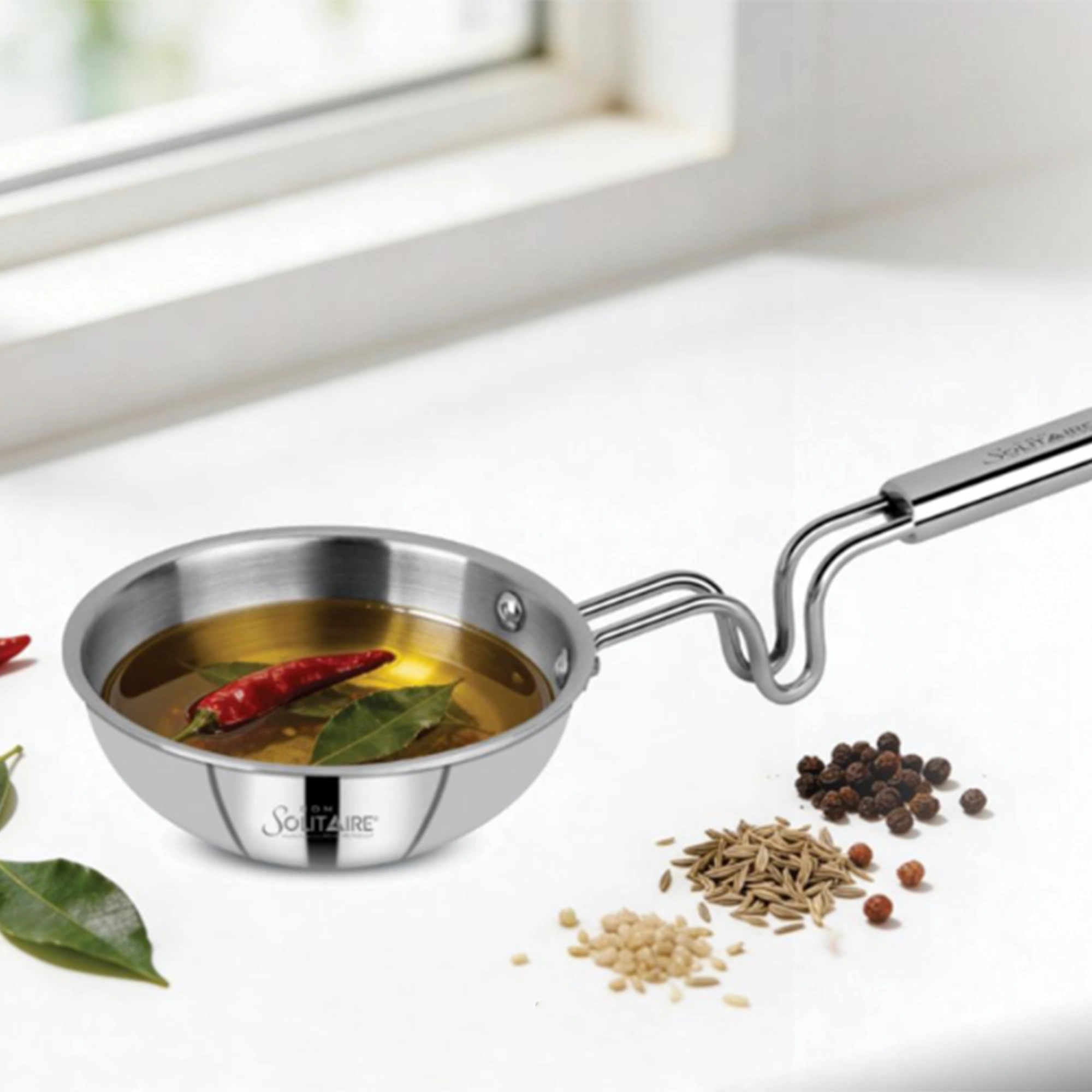 SOLITAIRE Stainless Steel Triply Tadka Pan 13cm TV03