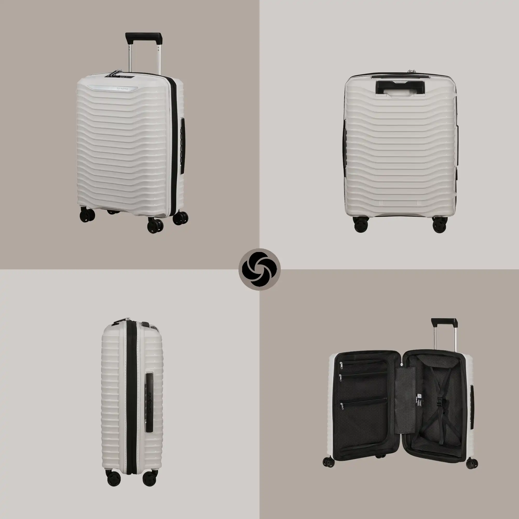 Upscape is light but packed with convenient travel features. Inside its spacious interior is a fixed divider with 2 mesh pockets. The interior lining is made with Recyclexâ„¢ and is also removable and washable. Need more space? Use the expander to store even more. Then keep everything secure with the integrated 3-digit TSA lock 008. Upscape is equipped with shock-absorbing wheels for smooth movement, and top and side handles for easy carrying.