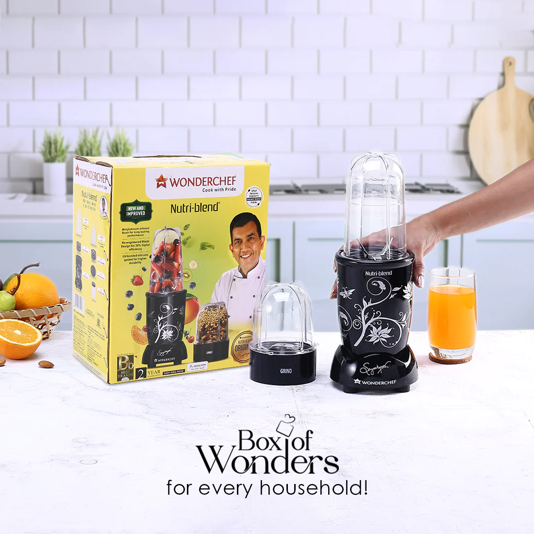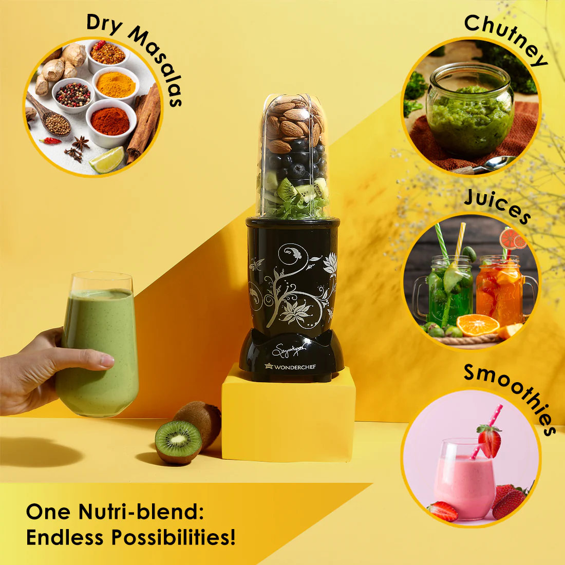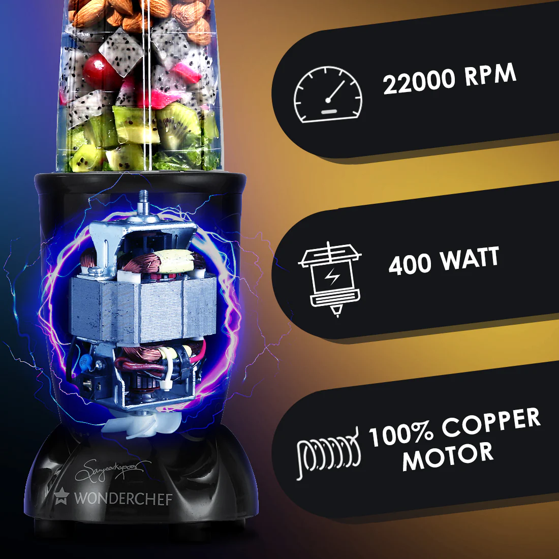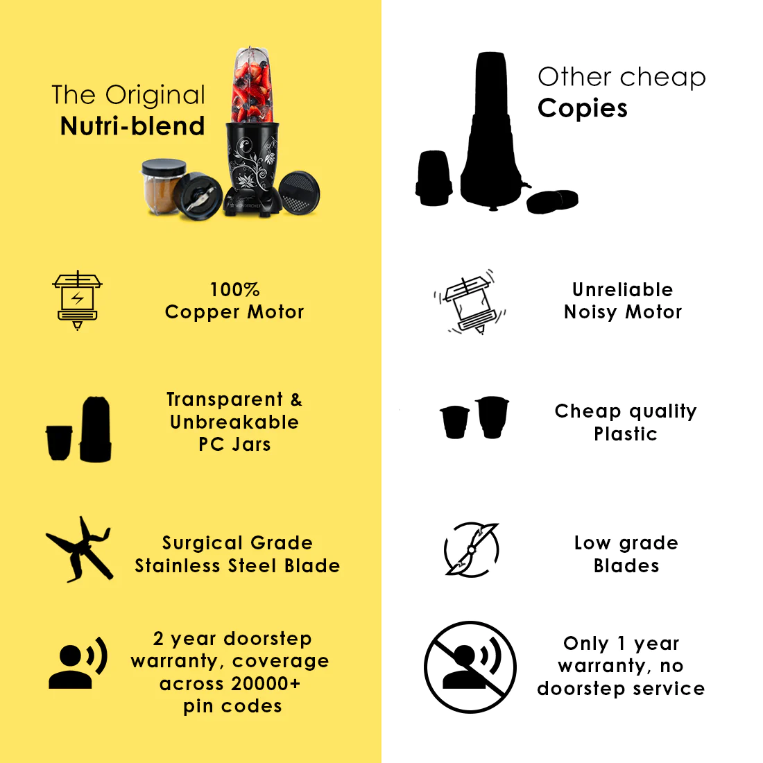 Nutri-blend, 400W, 22000 RPM 100% Full Copper Motor, Mixer-Grinder, Blender, SS Blades,2 Unbreakable Jars, 2 Years warranty, Black