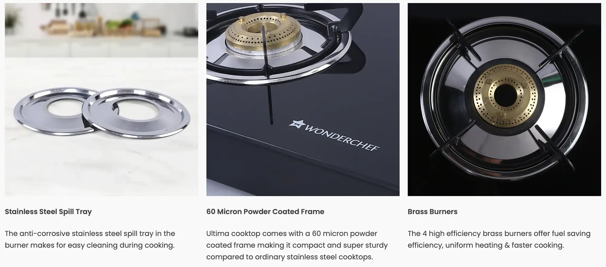 WONDERCHEF Ultima 4 Burner Manual Glass Gas Stove | 6mm Toughened Glass Gas Stove | Stainless Steel Drip tray | Anti-Skid Legs | Large Pan support | Manual Ignition | 360 degree Revolving Nozzle | Black steel frame | 2 Year Warranty | Black WON509-63153287