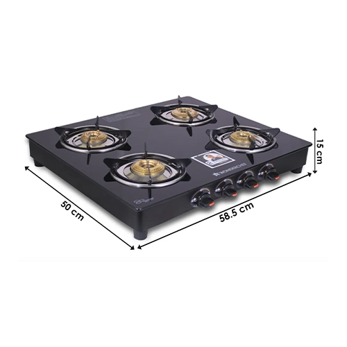 Ultima 4 Burner Manual Glass Cooktop | 6mm Toughened Glass Cooktop | Stainless Steel Drip tray | Anti-Skid Legs | Large Pan support | Manual Ignition | 360 degree Revolving Nozzle | Black steel frame | 2 Year Warranty | Black