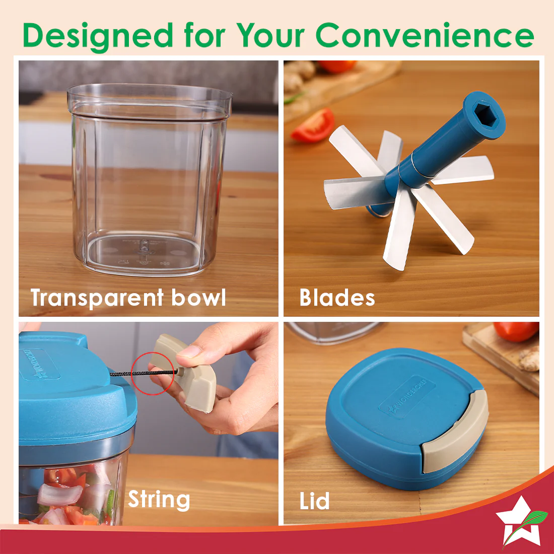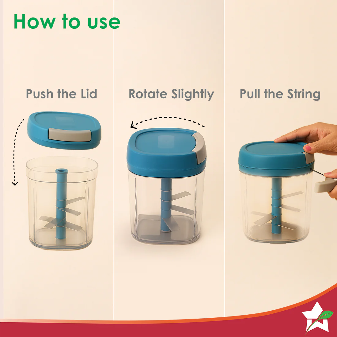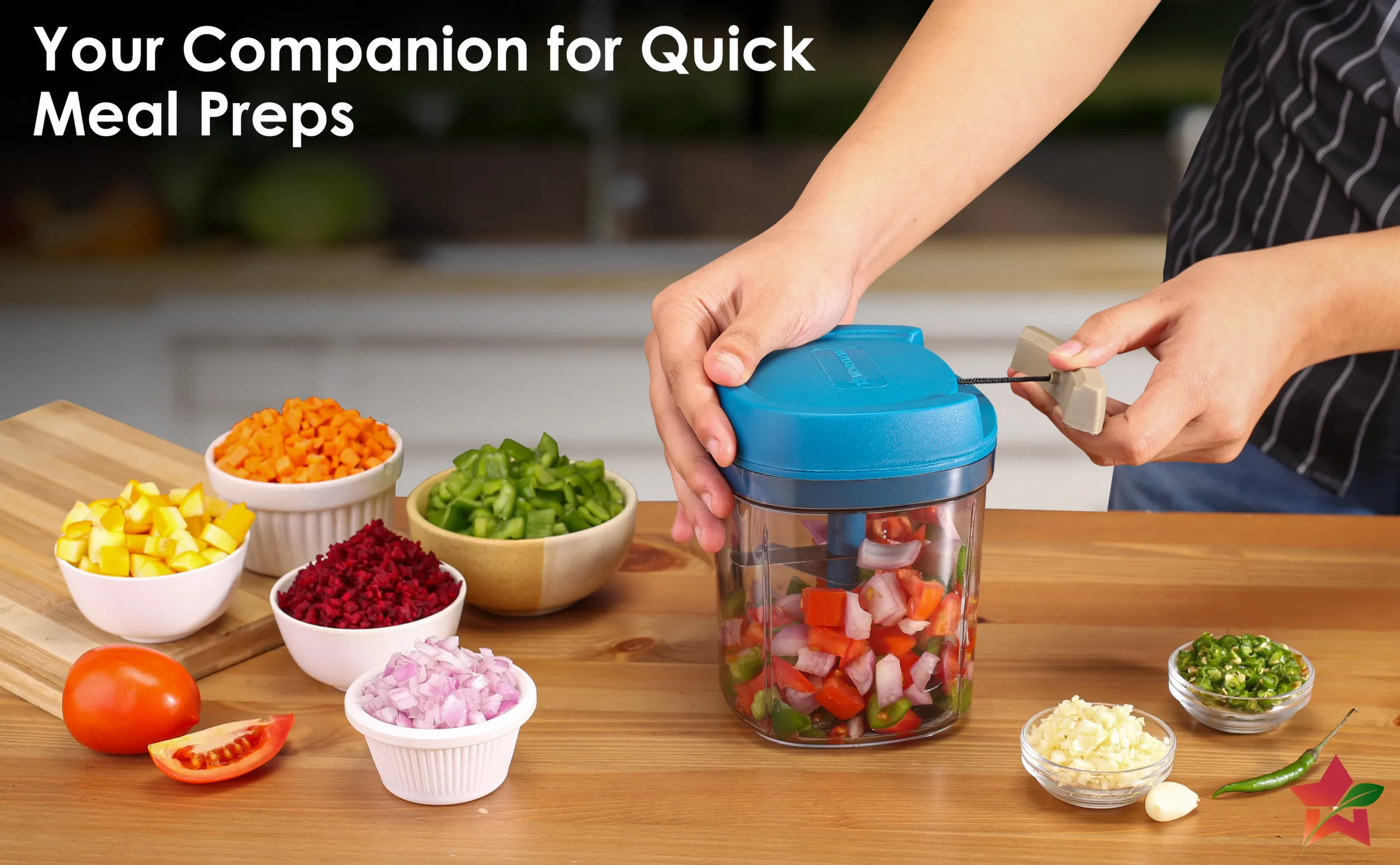 With just a few pulls, Wonderchef Pulse String Chopper chops fruits, vegetables, nuts, and garlic! Perfect for quick meal preparation everyday!