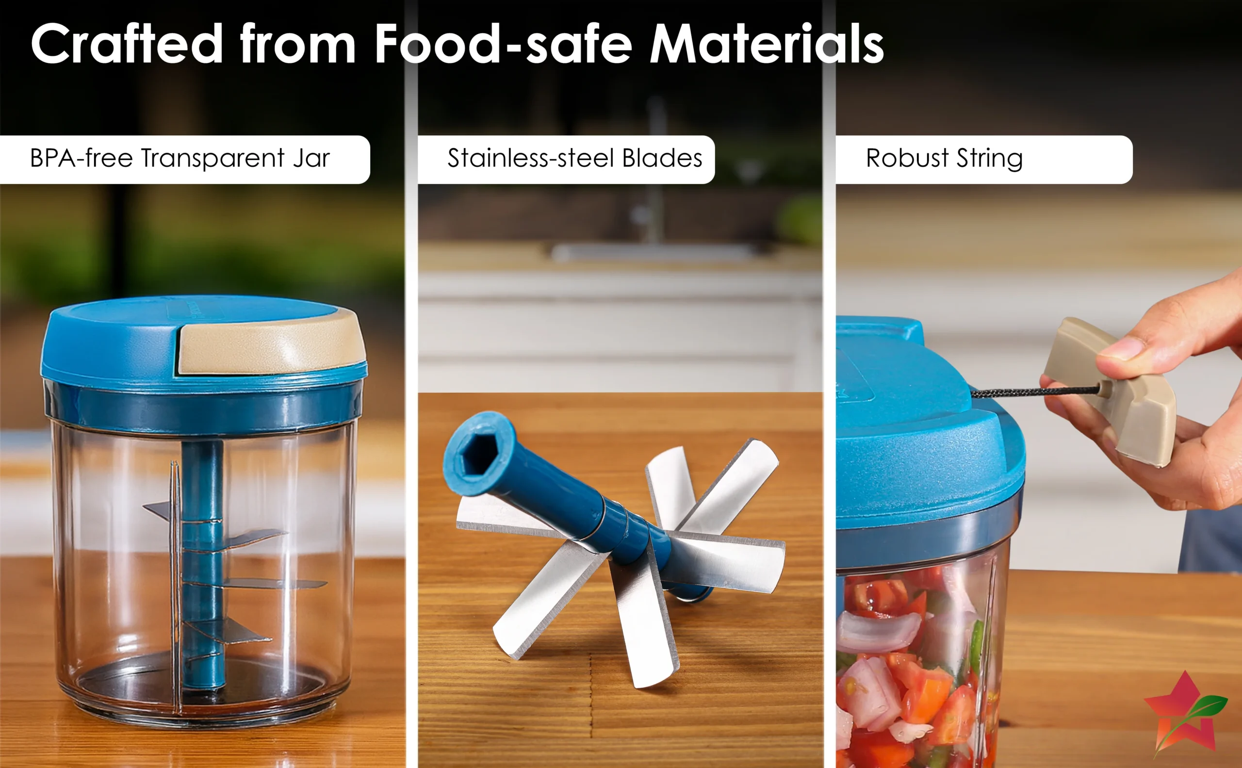 - Precision Cutting Every Time: Six sharp stainless-steel blades ensure fine, uniform chopping by covering the entire jar’s height. Rust-resistant and built for durability.