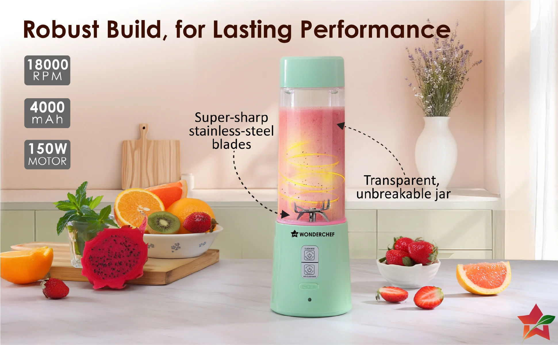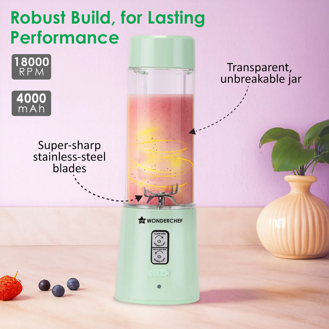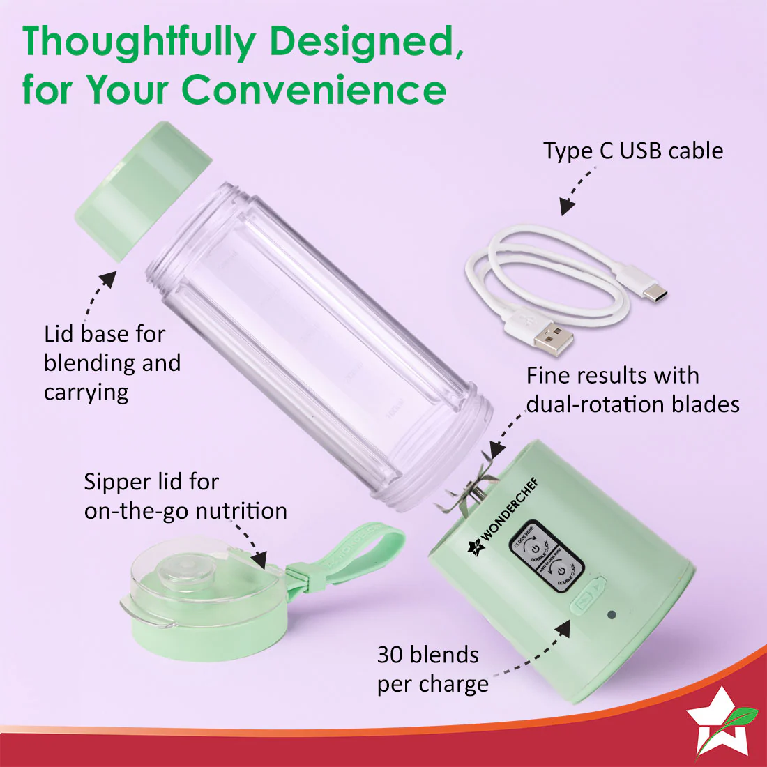 - POWER-PACKED PERFORMANCE: Fast charging battery with universal Type-C port gives you 20 blends with one single charge.