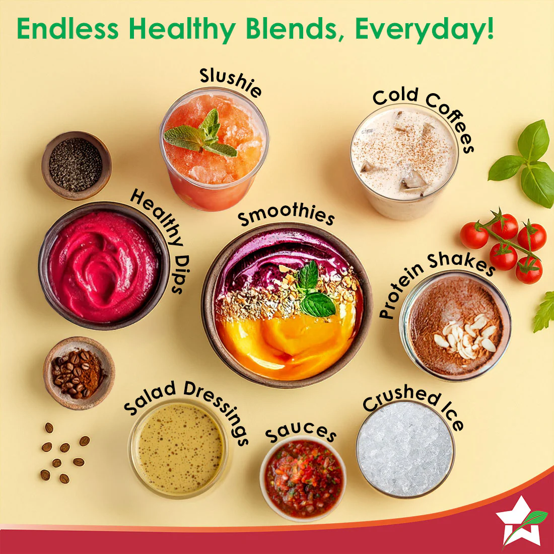 - NOURISHMENT WITH A TWIST: Crush ice, make fresh fruit smoothies, protein shakes, slushies, cold coffees, salad dressings and dips.