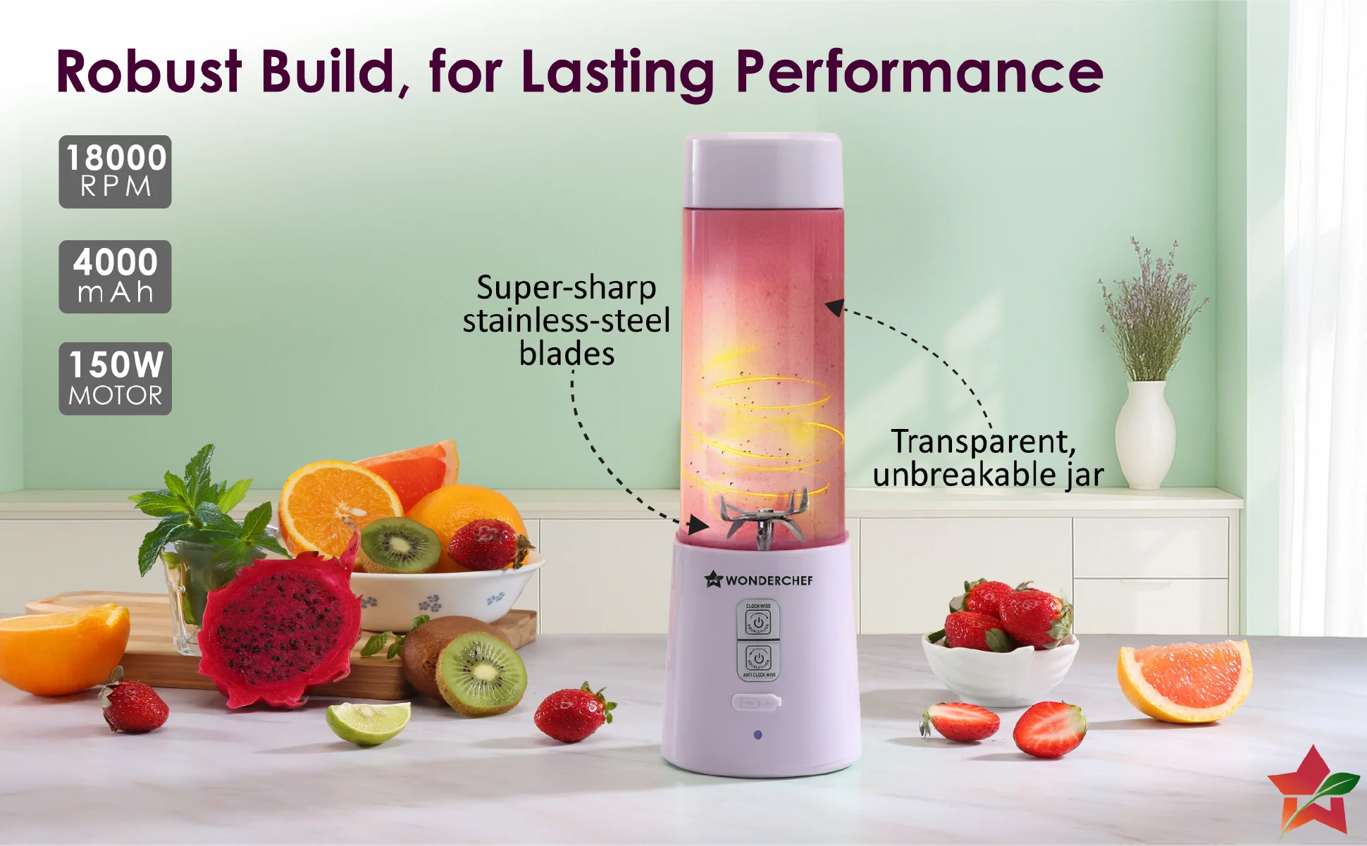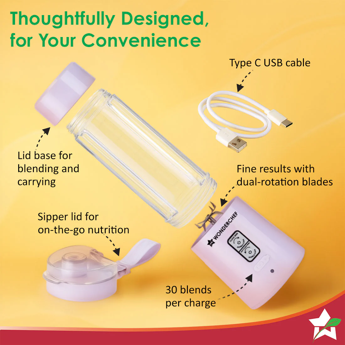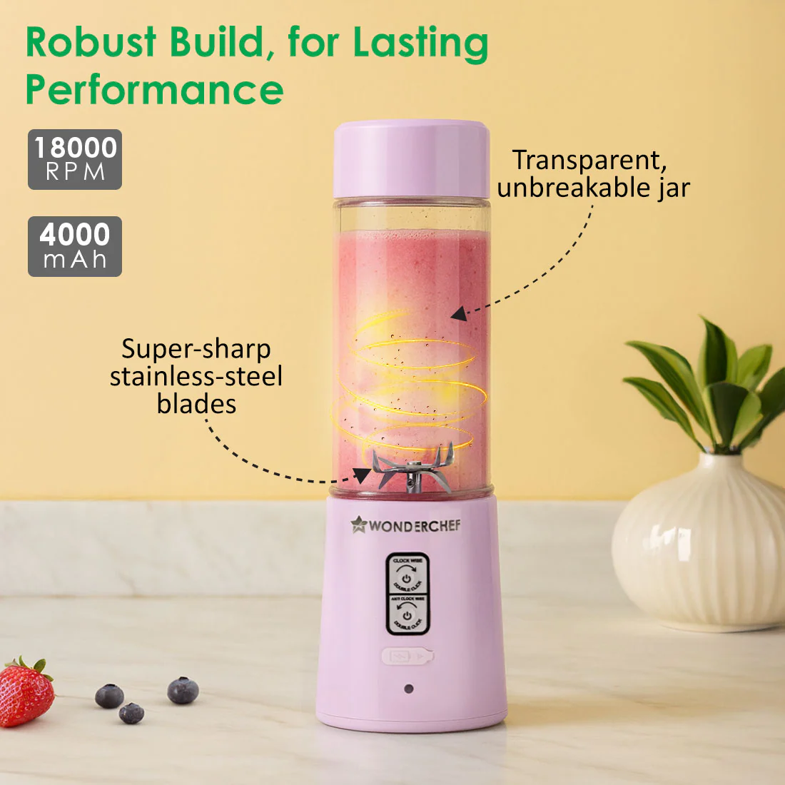 - POWER-PACKED PERFORMANCE: Fast charging battery with universal Type-C port gives you 20 blends with one single charge.