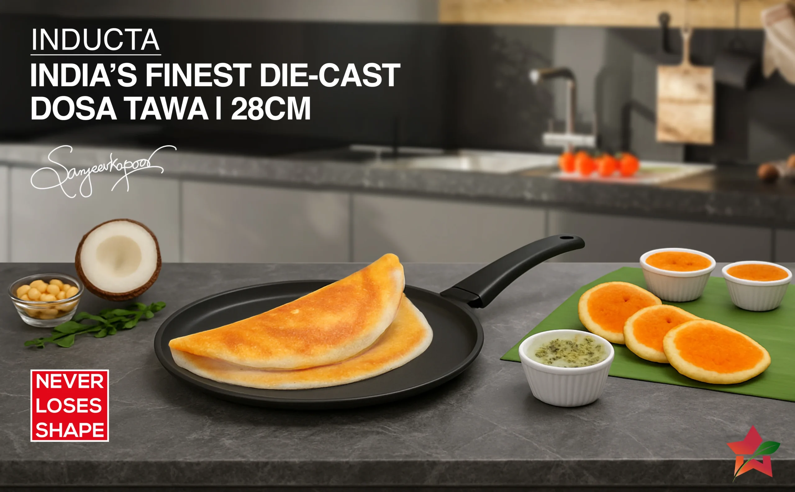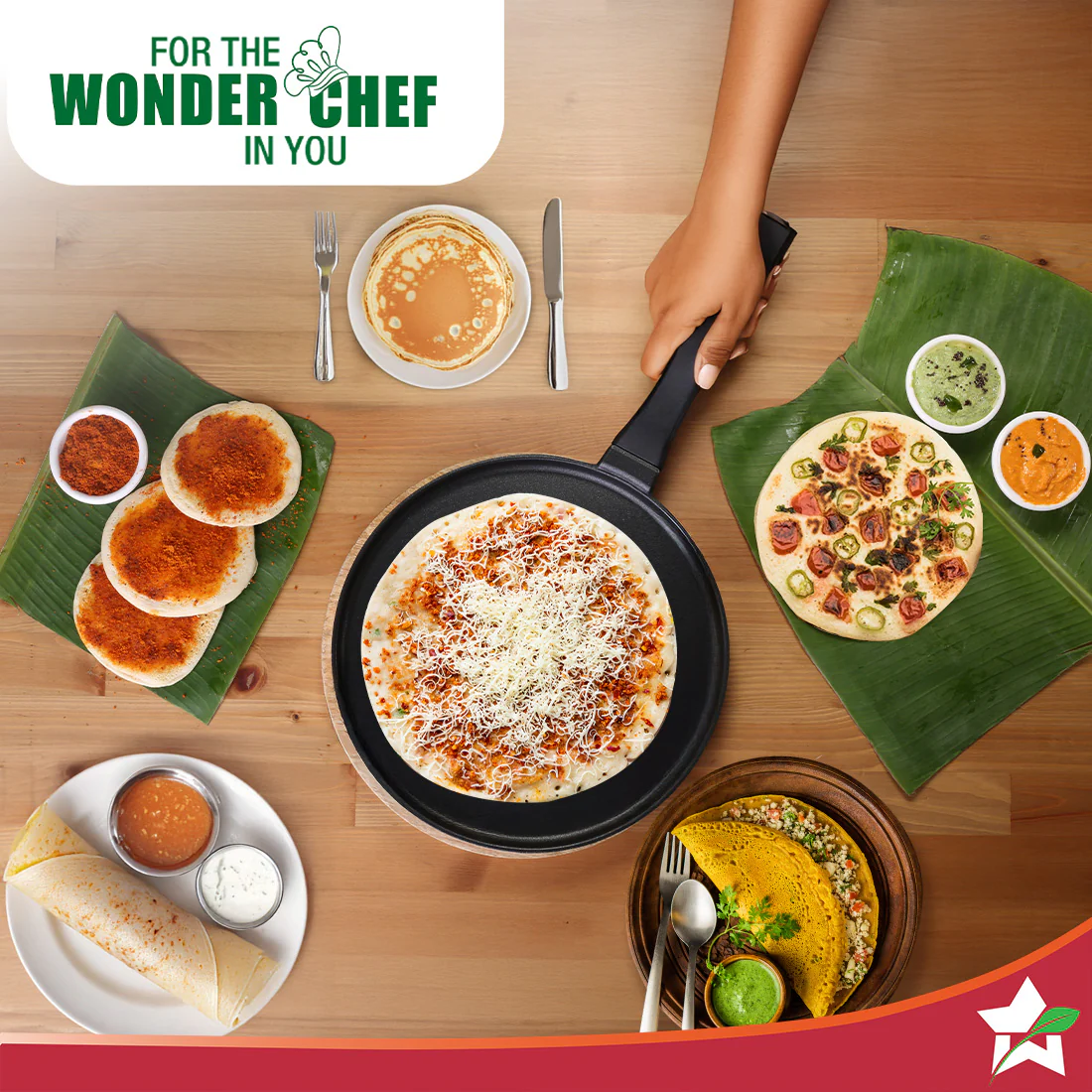 WONDERCHEF Inducta Die-cast Dosa Tawa, 28cm, 4mm, Japanese Non-stick Coating, Cook with Less Oil, For Dosas, Rotis, Parathas, Omelettes, Pancakes, Compatible with All Cooktops, 2-Yr Warranty, Black WON787-63155182