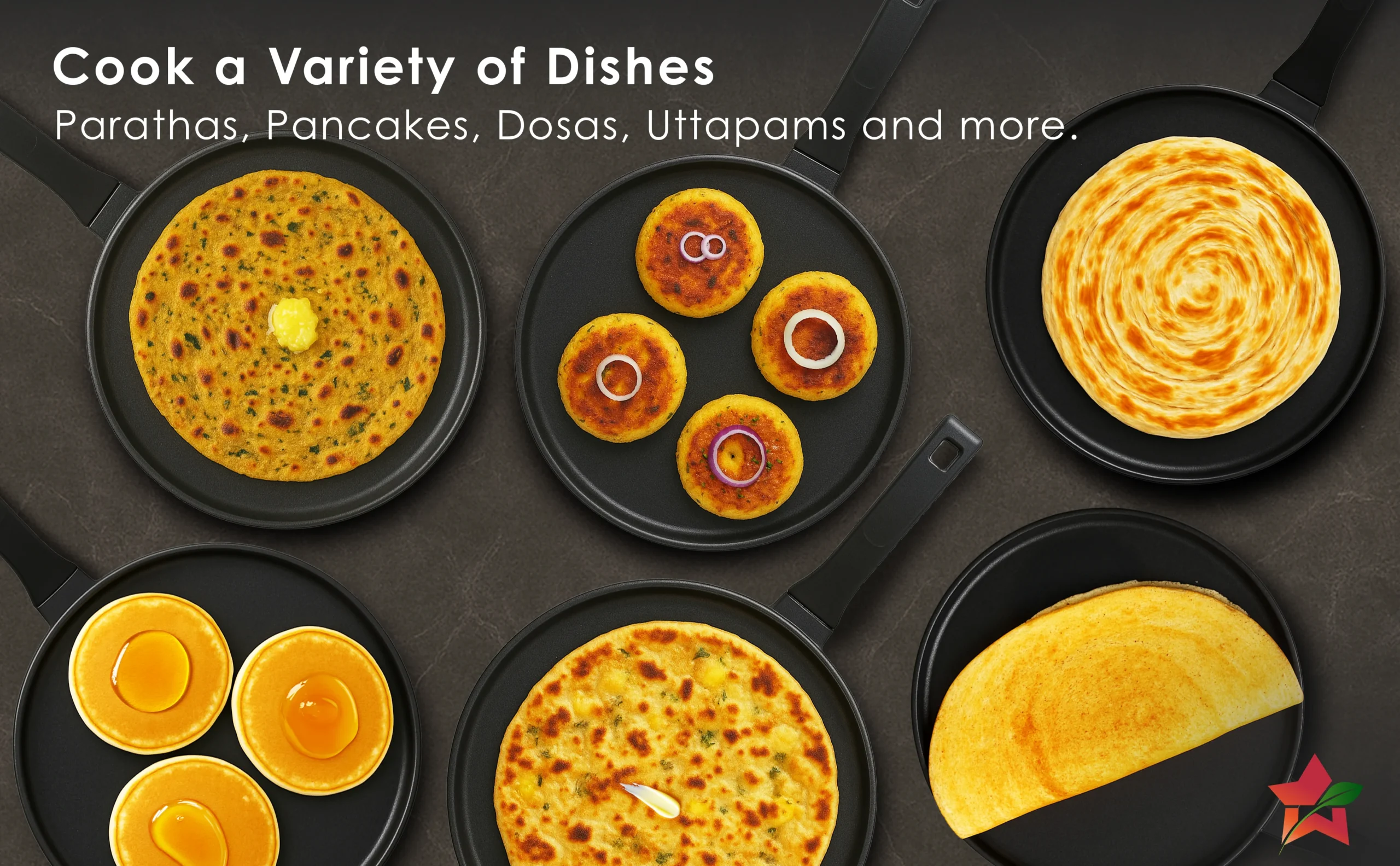 - VERSATILE USE: Cook a variety of dishes including dosas, chillas, rotis, parathas, omelettes, pancakes, French toasts, pizzas and more.
