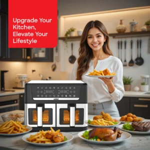 Elevate your cooking experience with the 12L Big Capacity Air Fryer Oven, designed for family-sized meals and versatile culinary creations. This powerful 2800W appliance combines air frying, roasting, reheating, and dehydrating into one sleek, stainless steel unit. Featuring a transparent glass window, a cool-touch body, and an intuitive LED digital touch control panel, it ensures…